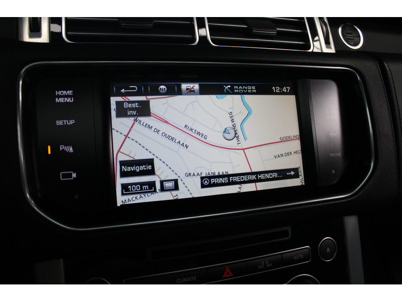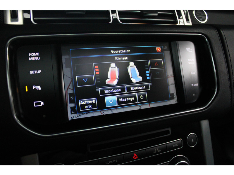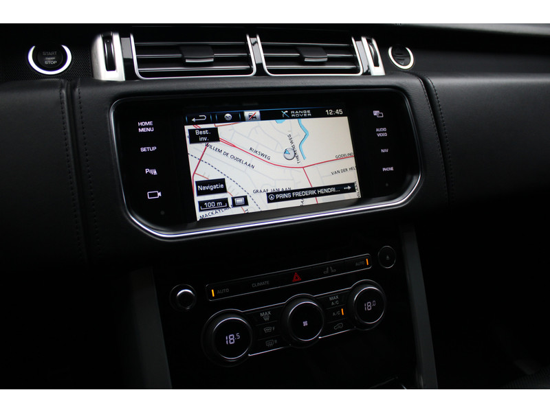 Een rit met de Land Rover Range Rover is telkens weer een feestje, en dankzij zijn rijcomfort stappen u en uw passagiers na iedere rit verkwikt weer uit. Een achtcilinder dieselmotor en een automatische transmissie verzorgen de aandrijving van deze SUV. Hoge kwaliteit is ook binnenin aanwezig. Kijkt u maar naar de leren bekleding! Doe maar luxe! Neem plaats in de verwarmbare voorstoelen en voel hoe de massagefunctie zorgt voor verfrissende doorbloeding op de lange ritten. Zit u goed? De stoelen zijn eenvoudig instelbaar dankzij de elektrische bediening met geheugen. Met een druk op de knop gaat de elektrische achterklep open. Het glazen panoramadak geeft ook doordeweeks een vakantiegevoel. Wat een licht en zicht! Ook de passagiers achterin ervaren het ultieme comfort, dankzij de verwarmde achterbank. Verder is de Land Rover uitgerust met: 21 inch lichtmetalen velgen, bi-xenon koplampen, zwarte hemelbekleding, extra getint glas, elektrisch bediende, verwarmde en inklapbare buitenspiegels en elektrisch verstelbare achterbank.