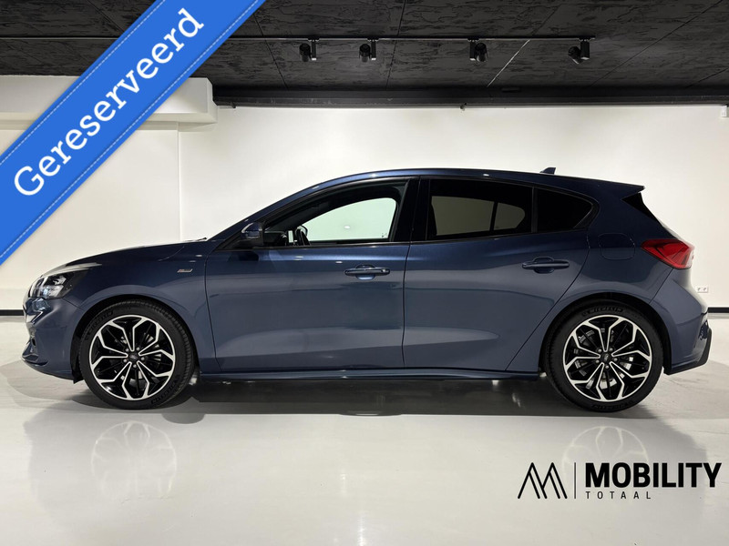 Bijzonder mooie en complete Ford Focus ST-line X 125pk automaat. In een prachtige metallic blauwe kleur. In combinatie met het ST-line X pakket krijgt de auto een stoer en sportief uiterlijk! De Ford Focus is een zeer luxe ST Line uitvoering en bezit veel fijne opties. Waaronder Afneembare Trekhaak, Winter pack met Stoelverwarming, Stuurverwarming en Voorruitverwaring, B&0 premium geluidsinstallatie, Achteruitrijcamera, Head-up display, ST-Line interieur, Grootscherm Navigatiesysteem, parkeersensoren, Lane assist, Side assist, Cruise control, Climate control, Apple carplay, Led koplampen, Led achterlichten en nog veel meer. Deze auto verkeert in uitstekende staat.