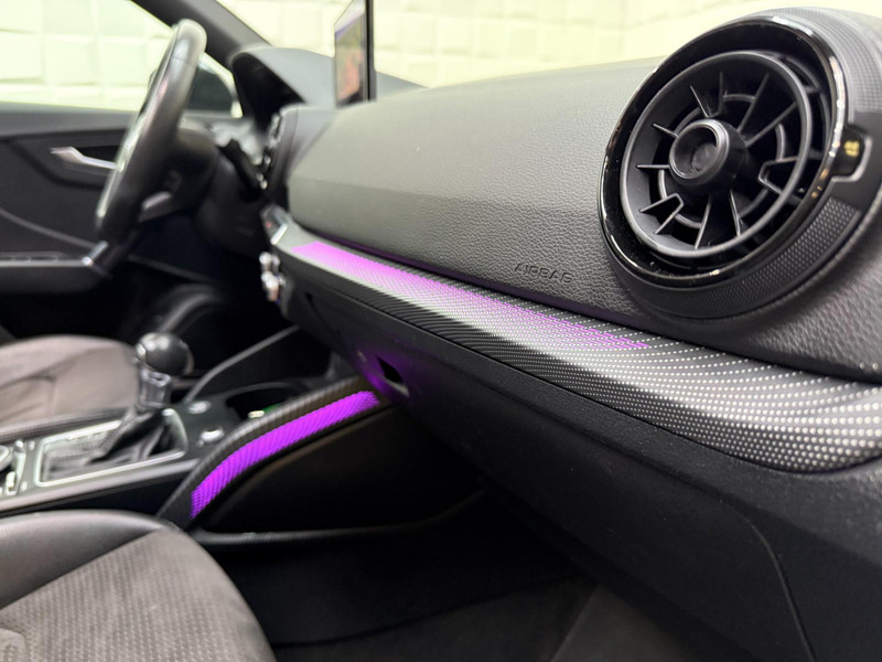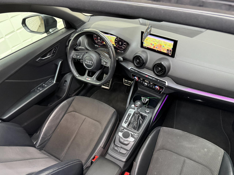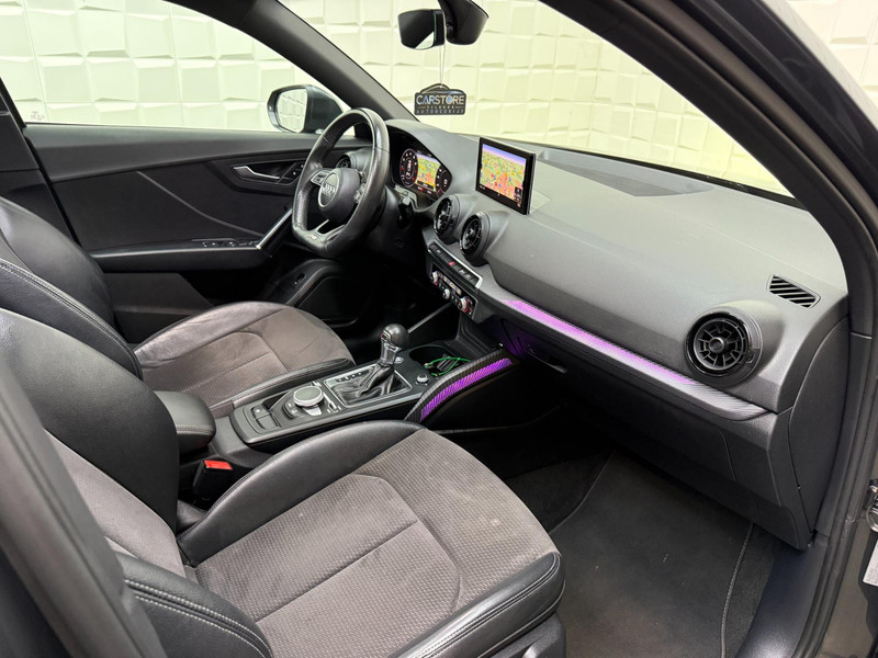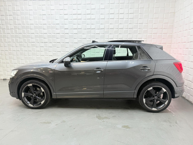 Dynamische styling, zorgvuldig afgewerkt met fraaie materialen en ontworpen met oog voor detail. De Audi Q2 is van binnen en van buiten een toonbeeld van Duits design. Fan van S-Line styling? Dat komt mooi uit, want deze is lekker sportief uitgevoerd. De aandrijving van deze Audi wordt verzorgd door een viercilinder motor en een automatische transmissie. Zon en frisse lucht krijgen vrij spel dankzij het elektrisch bediende glazen panorama dak; de elektrisch bedienbare achterklep maakt het u gemakkelijk en u voelt zich omgeven door luxe van het lederen interieur! Kou en regen maken geen indruk. Binnen zit u comfortabel dankzij de stoelverwarming. U wordt in deze auto ook getrakteerd op 19 inch lichtmetalen velgen, LED koplampen, sportonderstel, halflederen bekleding, warmtewerend glas en in delen neerklapbare achterbank.