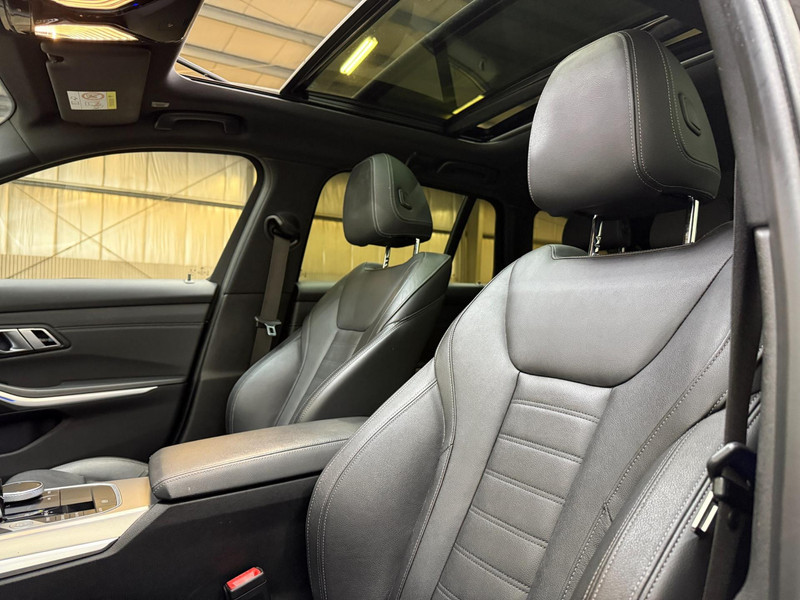 Met een auto als deze BMW 3-serie Touring komt u absoluut goed voor de dag. Een viercilinder motor en een automatische transmissie zorgen voor de uitstekende prestaties van deze auto. Dit mag je gerust een luxe uitvoering noemen: een lederen interieur én een elektrisch bedienbare achterklep! Voorin is het 's winters genieten met de verwarmbare voorstoelen voor zowel bestuurder als bijrijder. De sportstoelen geven het interieur een super strakke look. Het interieur lijkt groter en ruimtelijker dankzij het glazen panoramadak. Ook LED koplampen, sportonderstel, in delen neerklapbare achterbank, LED-achterlichten, verwarmde ruitensproeiers en snelheidsafhankelijke stuurbekrachtiging zijn aan boord.