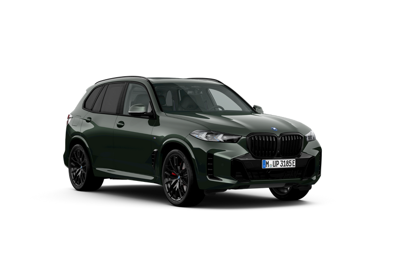 Deze BMW X5 is uitgevoerd in de uiterst exclusieve Malachite Green II Metallic "Sonderlackierung" (S490A) met BMW Individual Special Request lakkleur (P0490). De krachtige uitstraling wordt versterkt door 22 inch M dubbelspaak velgen (S01PQ) in Jet Black en het M Aerodynamicapakket (S0715). De sportieve details zoals M hoogglans Shadow Line (S0760), M Koplampen Shadow Line (S03MF) en M Sportremsysteem in rood (S03M2) geven de auto een uitgesproken dynamische uitstraling.