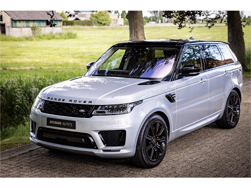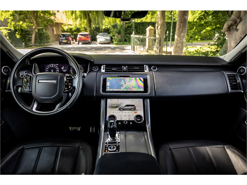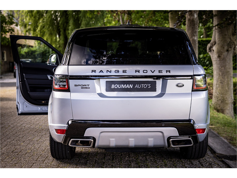 Fraaie Range Rover Sport HSE Dynamic Stealth met hybride aandrijflijn. Deze auto is volledig Land Rover dealer onderhouden. Lakkleur is Hakuba Silver metallic, het interieur is bekleed met Ebony Black leder. Als onderdeel van de Dynamic Stealth uitvoering zijn diverse exterieurdelen in hoogglans zwart uitgevoerd, zoals de spiegelkappen, air vents op de motorkap, side vents in de voorschermen, grille voorzijde, signature lijst op de achterklep en de woordmerken op achterklep en motorkap.