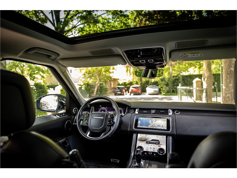 Deze Range Rover is compleet uitgerust met een glazen panoramadak waarbij het voorste deel geopend kan worden, stoelventilatie op voorstoelen, adaptive cruise control met stop en go, Meridian Surround audiosysteem, koelvak in middenconsole, 360 graden camera met surround view en zoomfunctie voorcamera en achtercamera, 21" 9 Spoke Gloss Black velgen, dode hoek assistentie, elektrisch verstelbare stoelen met memory functie, LED koplampen met adaptieve verlichting, Reverse Traffic Detection, keyless entry en start, verkeersbordtekenherkenning, navigatiesysteem met touchscreen, luchtvering met hoogteregeling, Apple Carplay en Android Auto, verwarmbare voorstoelen, verwarmbaar stuurwiel, verwarmbare voorruit, bluetooth telefoonintegratie, elektrisch inklapbare buitenspiegels, automatische klimaatregeling met gescheiden zones.