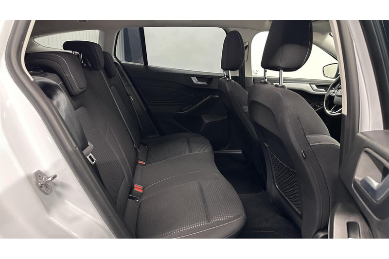 Een aanhanger of caravan kan ook mee, dankzij de elektrisch inklapbare trekhaak Hoe is het met de banden, de accu en andere onderdelen? Connected Services maakt het inzichtelijk, 24/7 via de app. De bediening van het audiosysteem en het full map navigatiesysteem gebeurt met knoppen op het stuur en als u wilt zelfs met uw stem. De audio is overigens voorzien van DAB-radio voor een altijd heldere ontvangst. De sensoren van de achteropkomend verkeer waarschuwing registreren wat er gebeurt in de dode hoeken en achter u. U krijgt meteen een waarschuwing als u een achterligger over het hoofd ziet. Boem is ho? Niet bij deze Ford Focus Wagon. De piepjes van de parkeersensoren waarschuwen u op tijd voor obstakels. U bent in deze Ford ook voorzien van WIFI-hotspot, cruise control, airconditioning, lederen stuur, isofix-aansluiting en centrale deurvergrendeling met afstandsbediening.