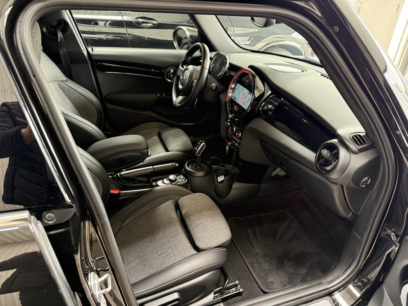 Schitterende Mini 5deurs automaat in Midnight Black metallic met hoogglans zwarte 17 inch licht metalen velgen. De Mini is voorzien van veel gave opties zoals: Apple Carplay, navigatie, Keyless entry and start. cruise control, LED verlichting, virtuele cockpit, stoelverwarming, parkeersensoren, LED verlichting, LED sfeer interieur verlichting, etc..