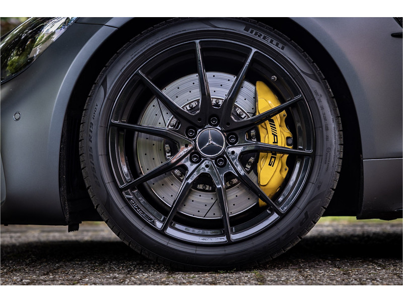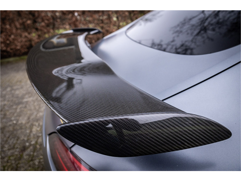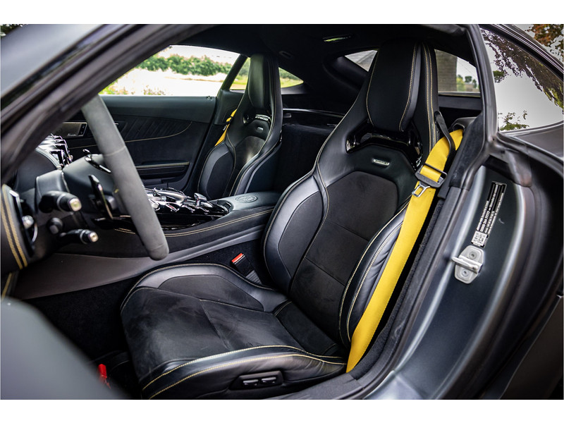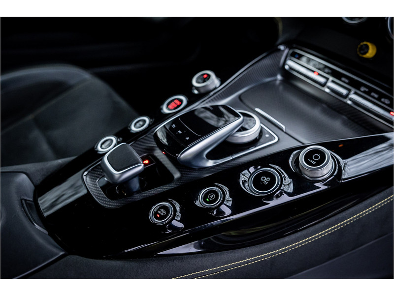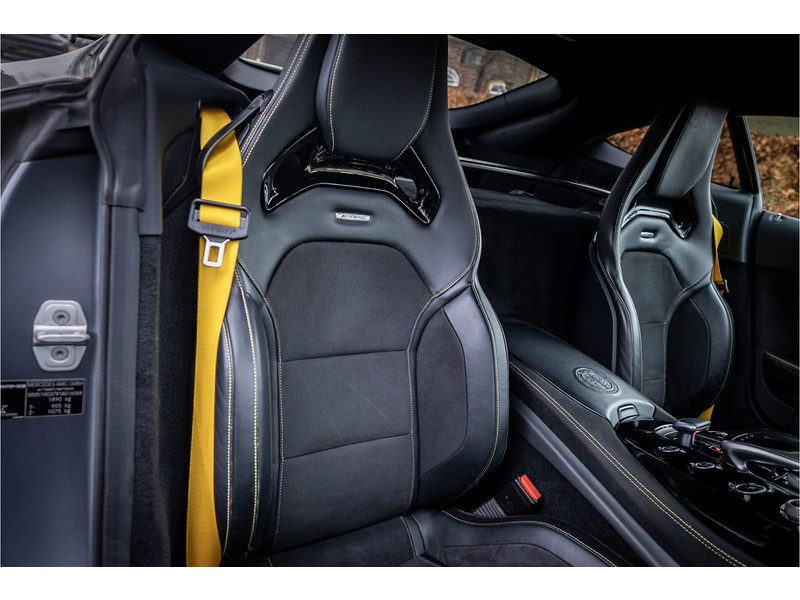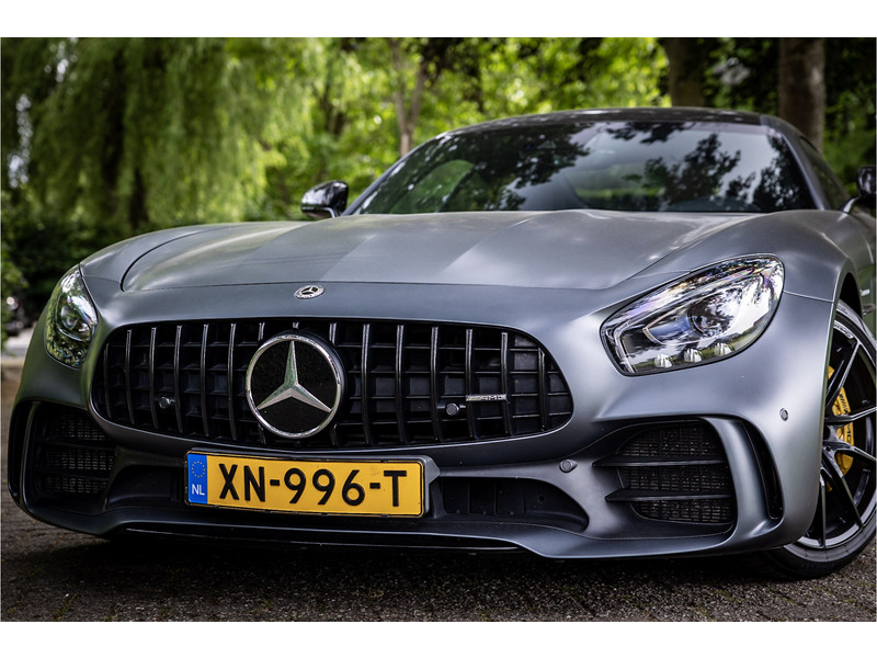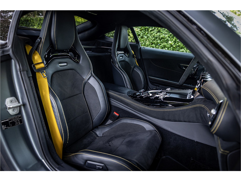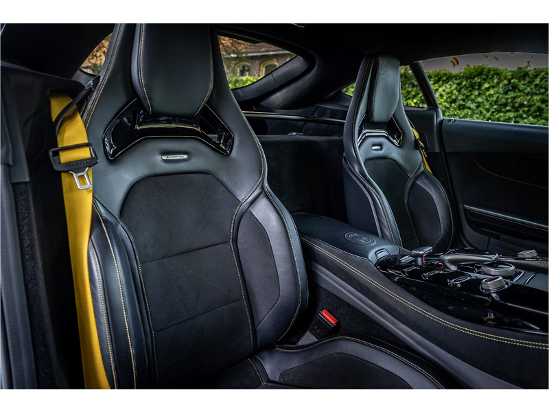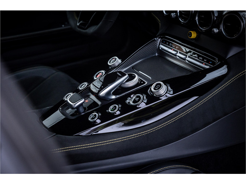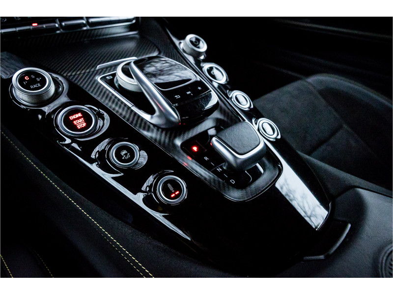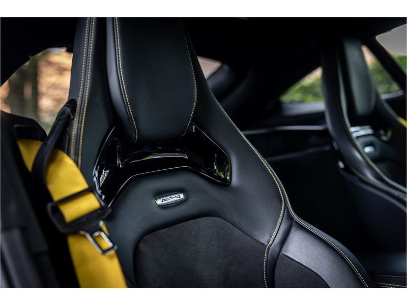 Tijdloze sportwagen voorzien van de best denkbare techniek die Mercedes die te bieden heeft in een prachtige uitvoering, zowel qua kleurstelling als uitrusting. Deze AMG GT R is voorzien van de lakkleur Designo Magno Selenite Gray, dit is een origineel gespoten matte lak. Het interieur is voorzien van de fijn zittende AMG performance stoelen afgewerkt met zwart leer Exklusiv met gele stiksels. Ook de middenconsole en dashboardbekleding zijn voorzien van dezelfde gele stikselafwerking. De gordels zijn uitgevoerd in geel en dit sluit hier mooi bij aan. Om het af te maken zijn alle mogelijke carbon pakketten aanwezig, zoals carbon motorblokafdekking, AMG Carbon exterieur pakket, Carbon exterieurpakket II met carbon dak, achterspoiler en spiegels en interieurinrichting in Carbon Mat.