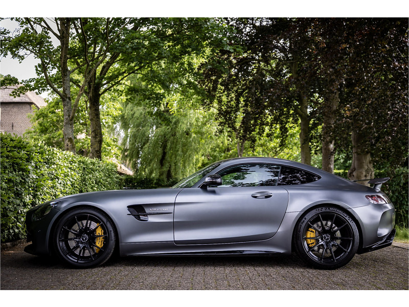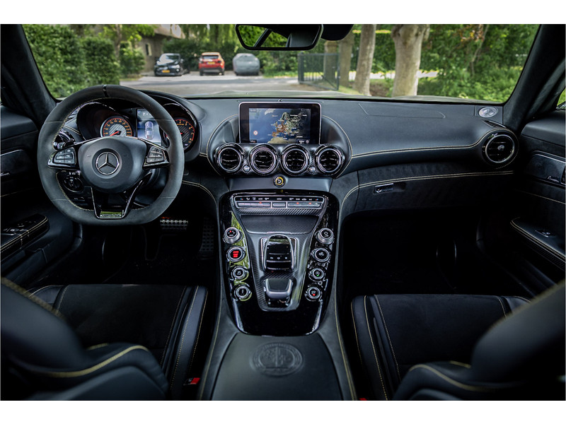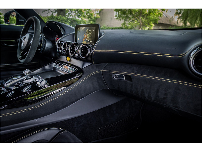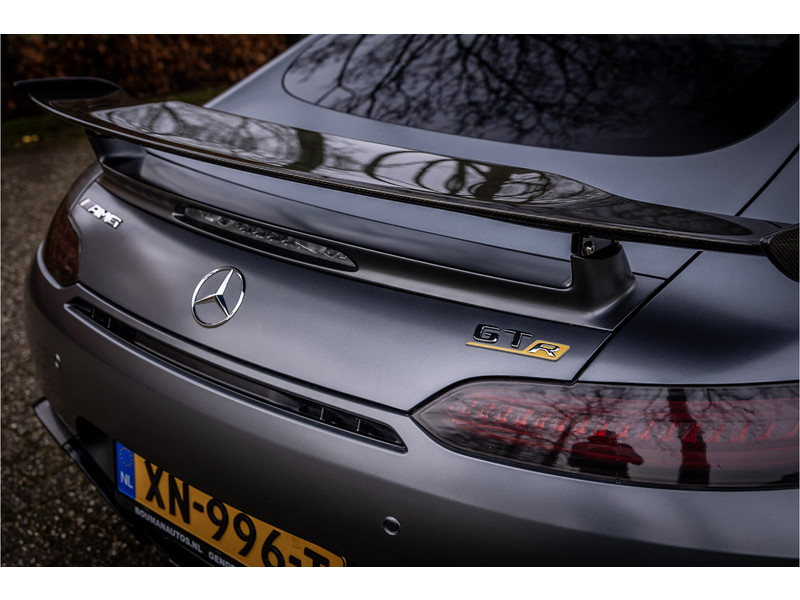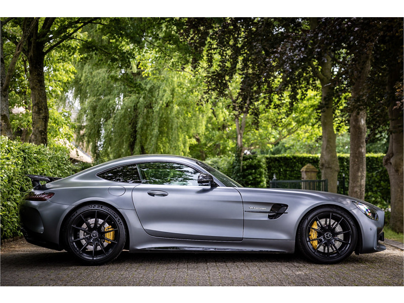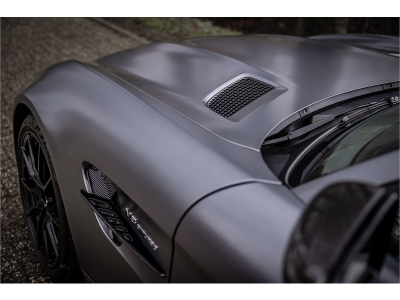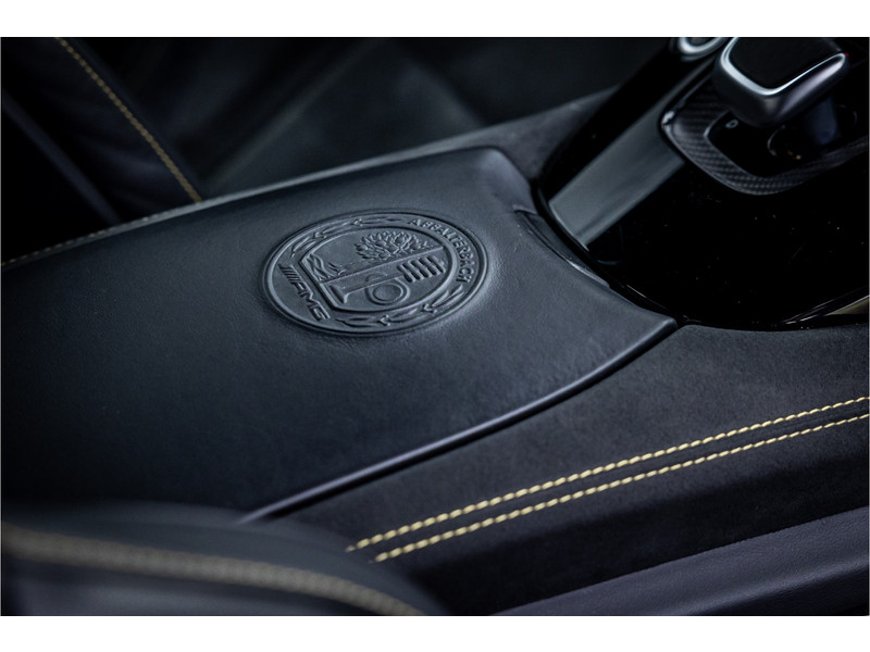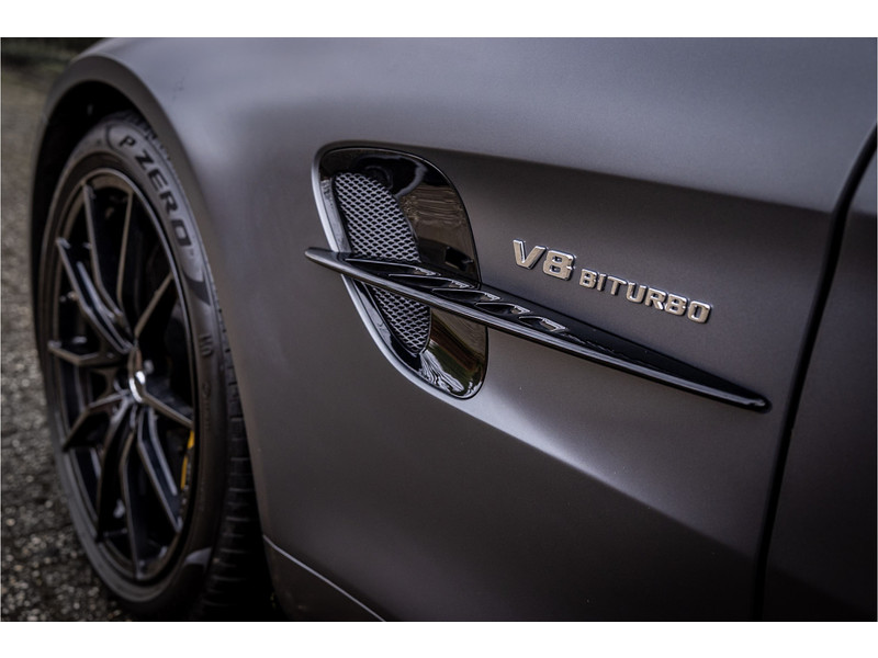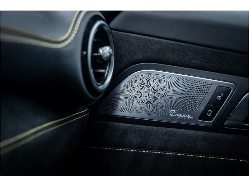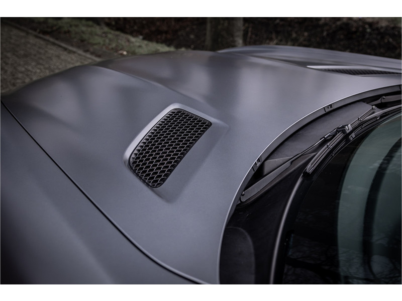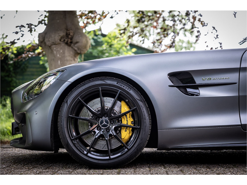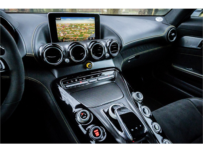 Tijdloze sportwagen voorzien van de best denkbare techniek die Mercedes die te bieden heeft in een prachtige uitvoering, zowel qua kleurstelling als uitrusting. Deze AMG GT R is voorzien van de lakkleur Designo Magno Selenite Gray, dit is een origineel gespoten matte lak. Het interieur is voorzien van de fijn zittende AMG performance stoelen afgewerkt met zwart leer Exklusiv met gele stiksels. Ook de middenconsole en dashboardbekleding zijn voorzien van dezelfde gele stikselafwerking. De gordels zijn uitgevoerd in geel en dit sluit hier mooi bij aan. Om het af te maken zijn alle mogelijke carbon pakketten aanwezig, zoals carbon motorblokafdekking, AMG Carbon exterieur pakket, Carbon exterieurpakket II met carbon dak, achterspoiler en spiegels en interieurinrichting in Carbon Mat.