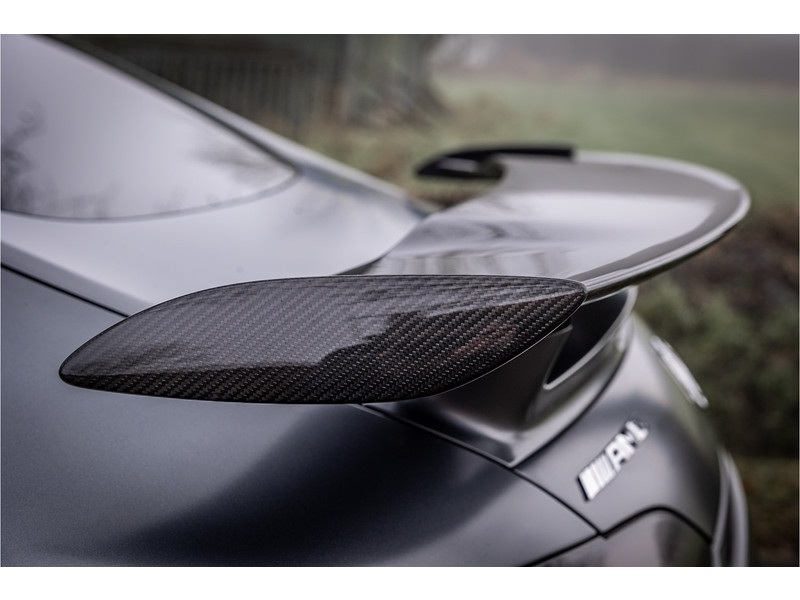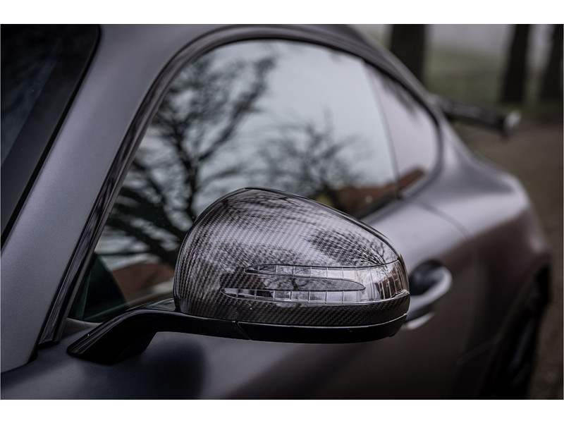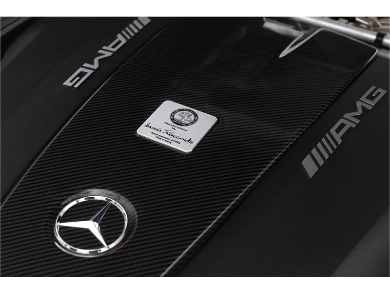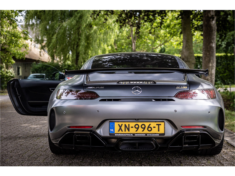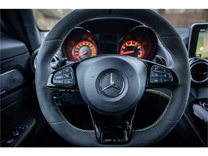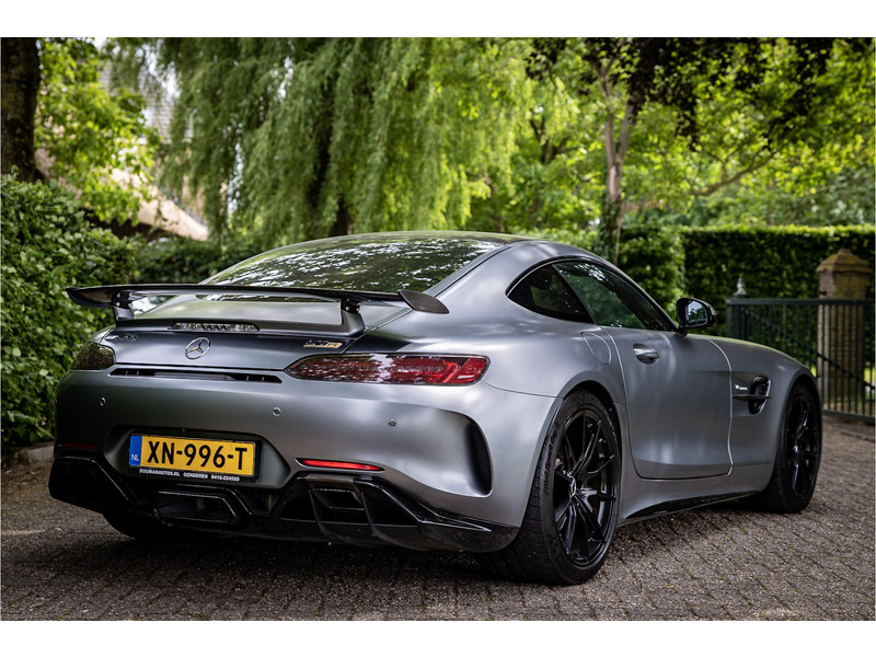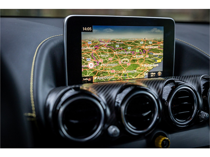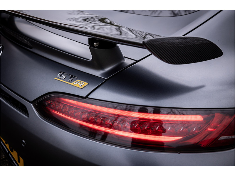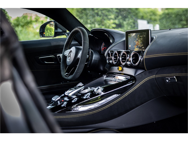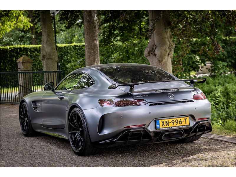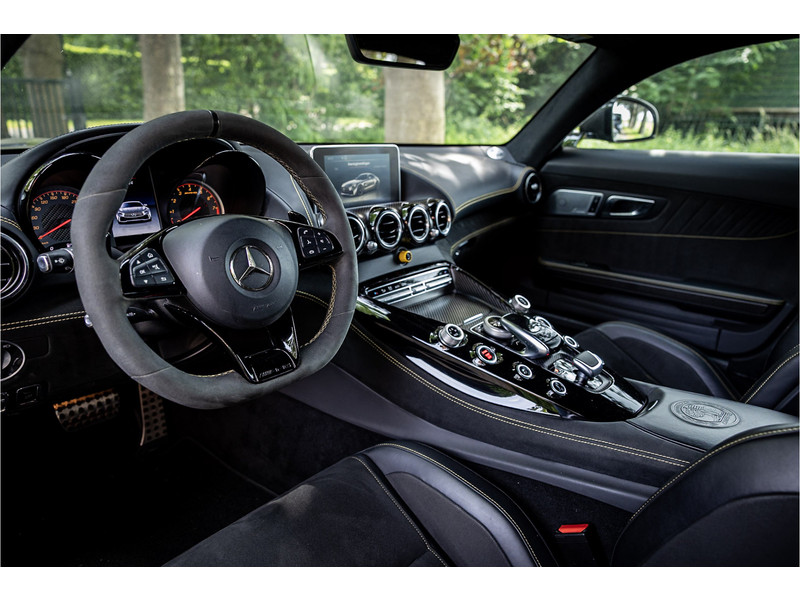 Tijdloze sportwagen voorzien van de best denkbare techniek die Mercedes die te bieden heeft in een prachtige uitvoering, zowel qua kleurstelling als uitrusting. Deze AMG GT R is voorzien van de lakkleur Designo Magno Selenite Gray, dit is een origineel gespoten matte lak. Het interieur is voorzien van de fijn zittende AMG performance stoelen afgewerkt met zwart leer Exklusiv met gele stiksels. Ook de middenconsole en dashboardbekleding zijn voorzien van dezelfde gele stikselafwerking. De gordels zijn uitgevoerd in geel en dit sluit hier mooi bij aan. Om het af te maken zijn alle mogelijke carbon pakketten aanwezig, zoals carbon motorblokafdekking, AMG Carbon exterieur pakket, Carbon exterieurpakket II met carbon dak, achterspoiler en spiegels en interieurinrichting in Carbon Mat.