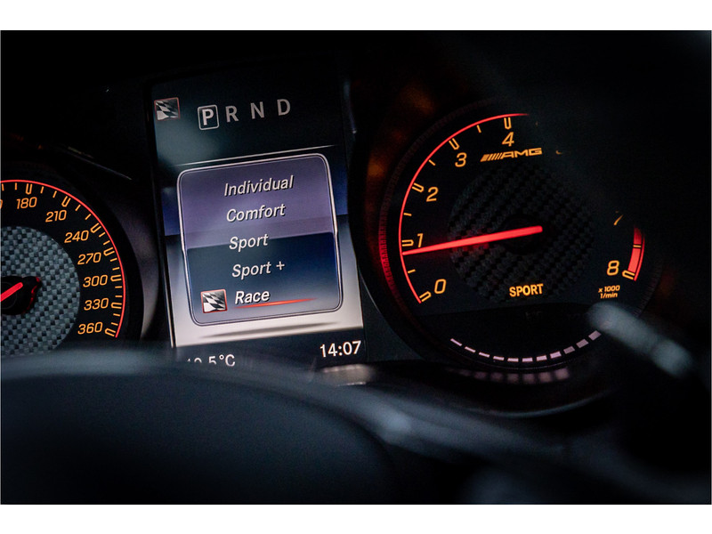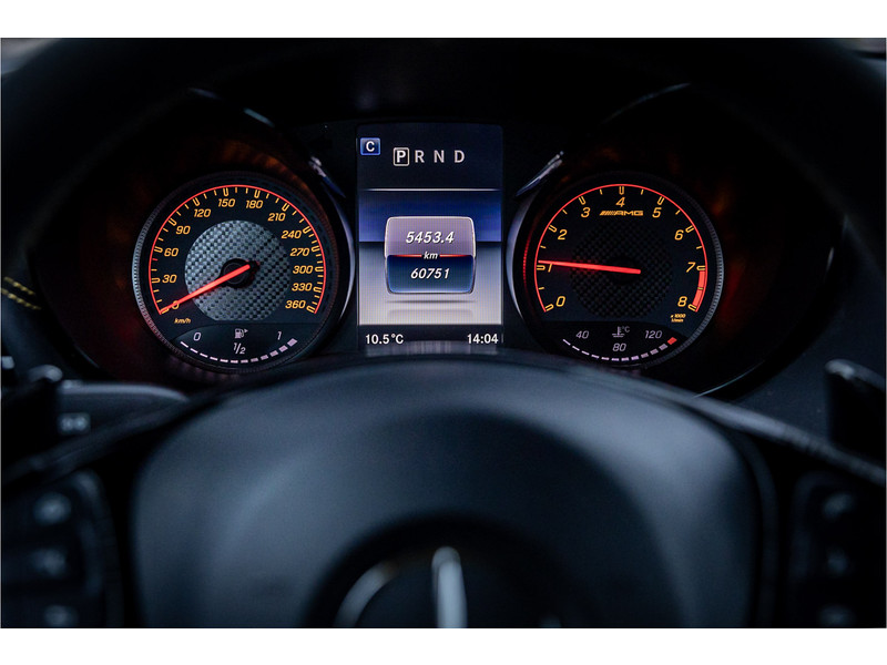 Tot de verdere uitrusting behoort het Burmester High End Surround audiosysteem (meerprijs van 5.022 euro en 3.500 euro duurder dan standaard Burmester), AMG Track Pace pakket, Distronic Plus cruise control, meesturende achteras, DAB tuner, instaplijsten verlicht, dode hoek assistentie, Comand online navigatie, achteruitrijcamera parkeersensoren voor en achter, memory pakket op beide voorstoelen met elektrisch verstelbare stuurkolom, LED koplampen met adaptieve grootlichtassistent, hemelbekleding in designo zwart, blusapparaat, bagageruimte afdekking / verduistering, zijruiten achter en achterruit verduisterd, verwarmbare voorstoelen, diefstalbeveiligingspakket met hellinghoekdetectie, spiegelpakket met elektrisch inklapbare buitenspiegels, brandstoftank vergroot en parkeersensoren voor en achter.