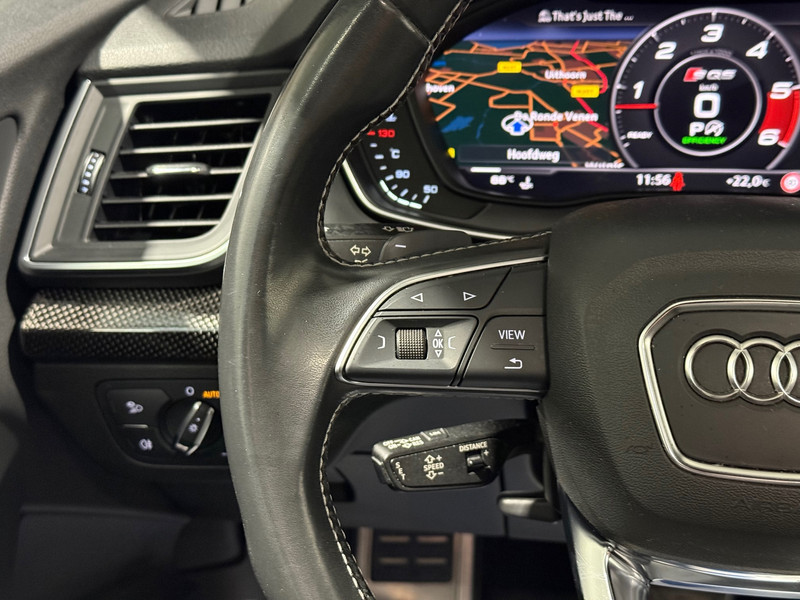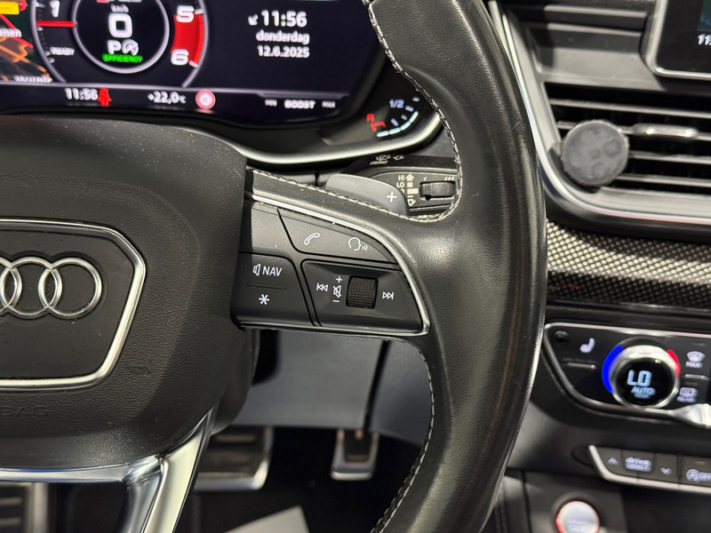 Het digitale dashboard stelt u in staat uw cockpitinterface te personaliseren. De 360 graden camera op deze auto biedt u een volledig, panoramisch zicht op de omgeving. Adaptive cruise control is een comfortabele en veilige optie. Het systeem reguleert de snelheid en houdt automatisch afstand tot uw voorligger. Je ziet hem niet, maar hij is er wel: de elektrisch inklapbare trekhaak. Elk genre muziek komt tot z'n recht. Het high performance audiosysteem is perfect in te regelen op uw smaak! U bent in deze Audi ook voorzien van dashboard met spraakbediening, navigatiesysteem, achteropkomend verkeer waarschuwing, automatische airconditioning, sportstuur met schakelpaddels en draadloos opladen.