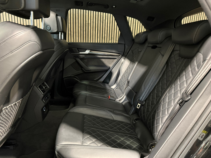 Ontspannen en zorgeloos autorijden, dat doet u met deze Audi Q5. Ook qua looks springt deze auto eruit, vanwege de fraaie S-Line styling. De zescilinder motor en de automatische transmissie maken het rijden met deze auto tot een waar feest. Niks mis met gewone stalen vering natuurlijk, maar de luchtvering in deze auto geeft toch wel een paar onderscheidende extra's als het gaat om veiligheid, gemak en wegligging. Deze Audi is voorzien van een mooie en comfortabele lederen bekleding. De verwarmbare voorstoelen inclusief massagefunctie benadrukken nog maar eens dat we hier te maken hebben met een regelrechte verwenauto. Goeie looks? Jazeker! Maar de sportstoelen zorgen ook voor een goed gesteunde en comfortabele zit. Als u blij wordt van licht en ruimte dan zult u zeker genieten van het elektrisch bediende panoramadak. De elektrisch bedienbare achterklep opent met een druk op de knop. Bij de rijke uitrusting horen ook 21 inch lichtmetalen velgen, LED koplampen, sportonderstel, warmtewerend glas, dakspoiler en in delen neerklapbare achterbank.