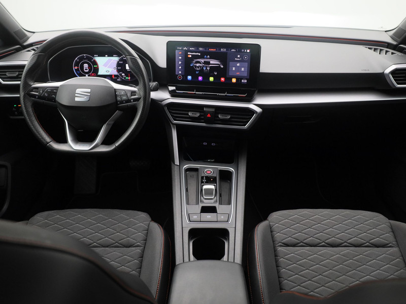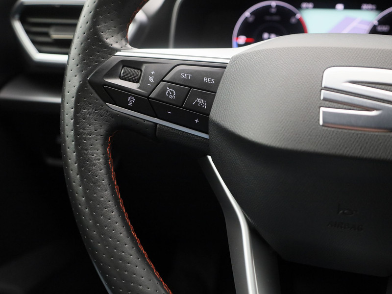 In één oogopslag heeft u alle benodigde functies onderweg in beeld, dankzij het slim ingedeelde digitale dashboard. Comfortabel en veilig achteruitrijden gaat gemakkelijker dan ooit met behulp van de achteruitrijcamera. Met adaptive cruise control houdt deze auto automatisch afstand tot uw voorligger. In deze auto kunt u de belangrijkste functies bedienen met uw stem. Prettig, altijd weten waar je moet zijn en hoe lang de rit nog duurt met het full map navigatiesysteem. Deze SEAT is voorzien van automatische airconditioning, regensensor, sportstuurwiel, keyless entry, automatisch dimmende binnenspiegel en centrale deurvergrendeling met afstandsbediening.