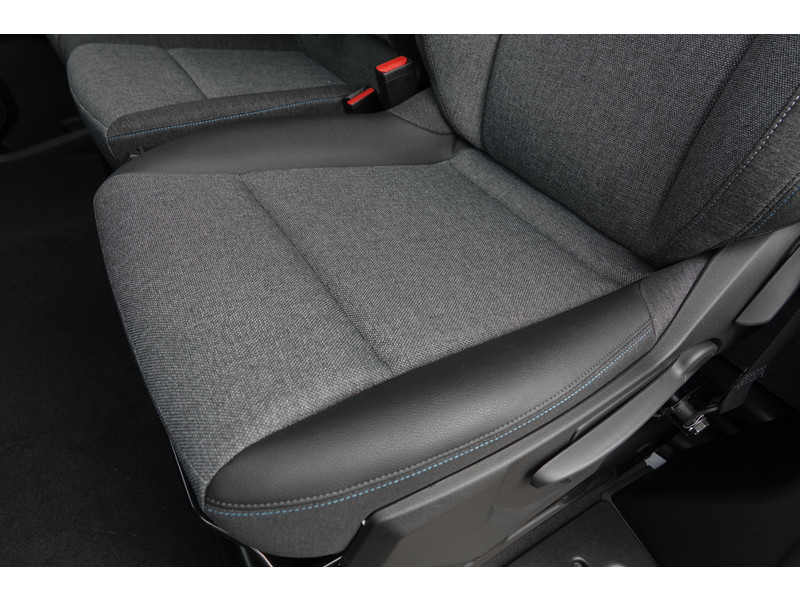 • Stoelbekleding: Stof/Leder met blauw stiksel