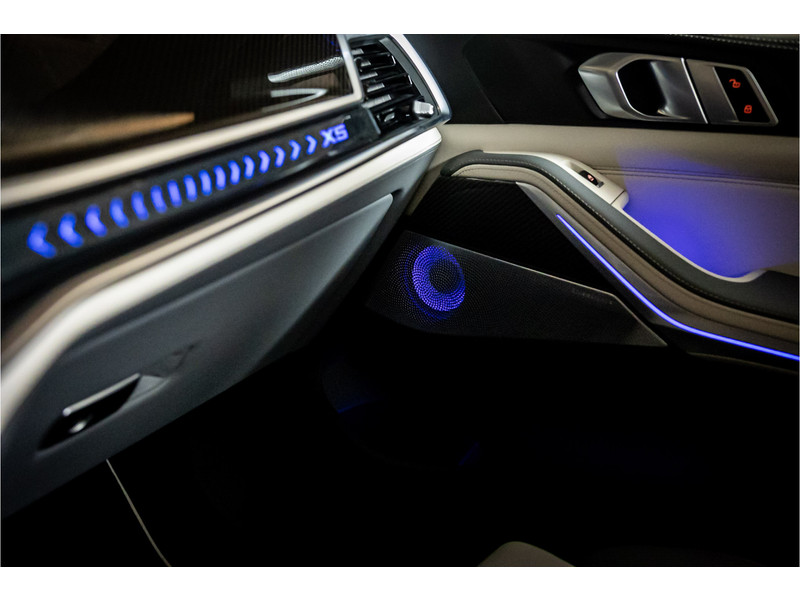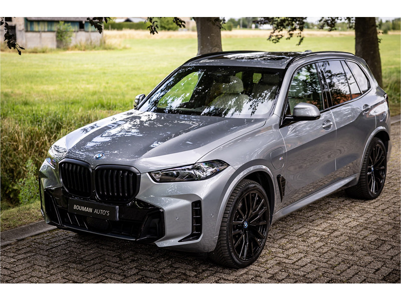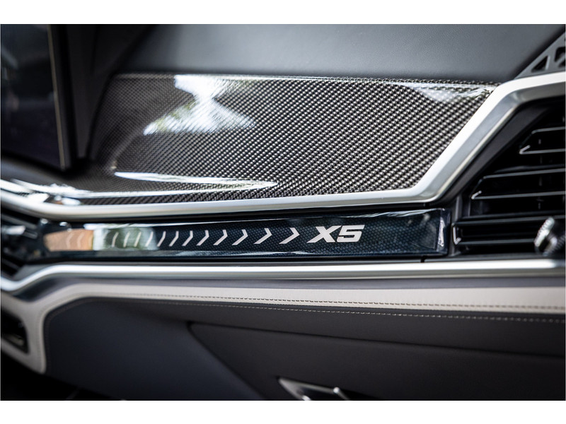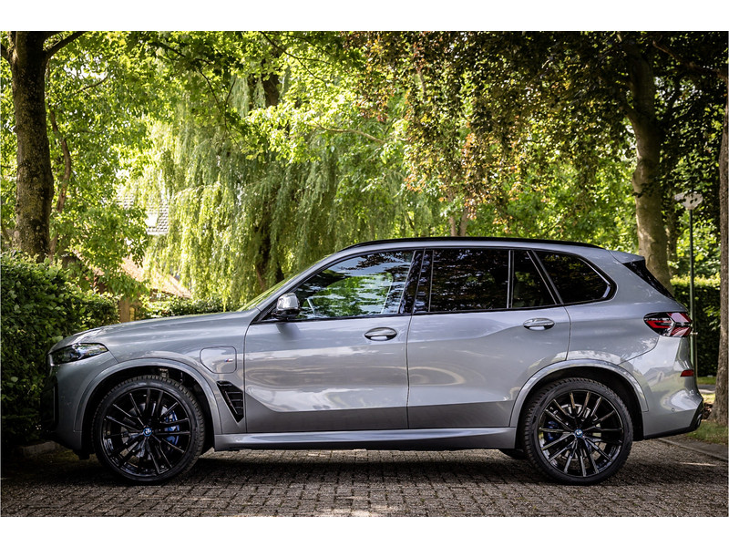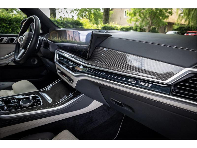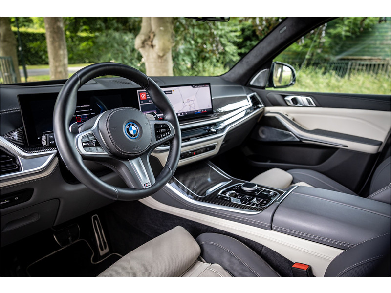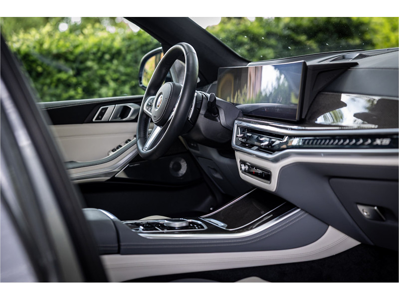 Fraai uitgevoerde BMW X5 50e M Sport in een stijlvolle configuratie en bomvol opties. Lakkleur is Skyscraper Grau metallic en het Individual Elfenbeinweiss / Atlasgrau leder interieur geeft een warme beleving in het interieur. Het dashboard en de portieren zijn voorzien van een Individual lederovertrek. De interieurhemel is voorzien van alcantara in de kleur antraciet. De interieurlijsten zijn uitgevoerd in carbon. Het shadowline pakket versterkt de dynamische uitstraling van deze X5.