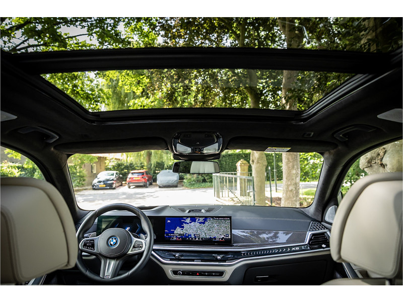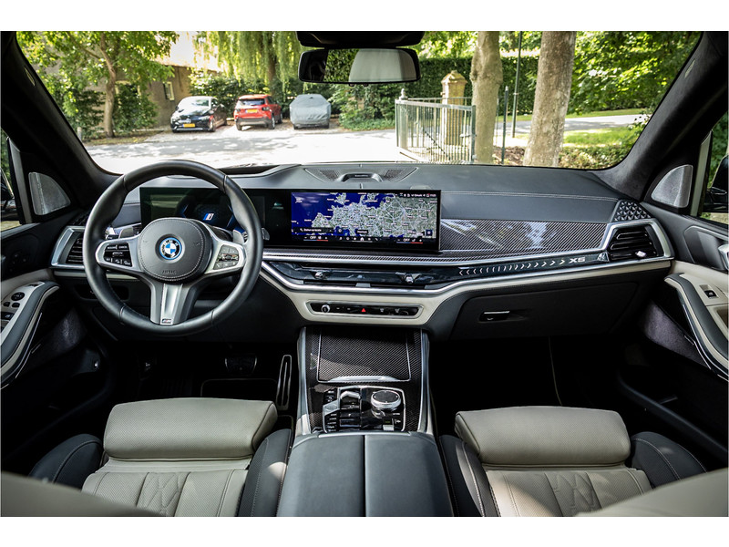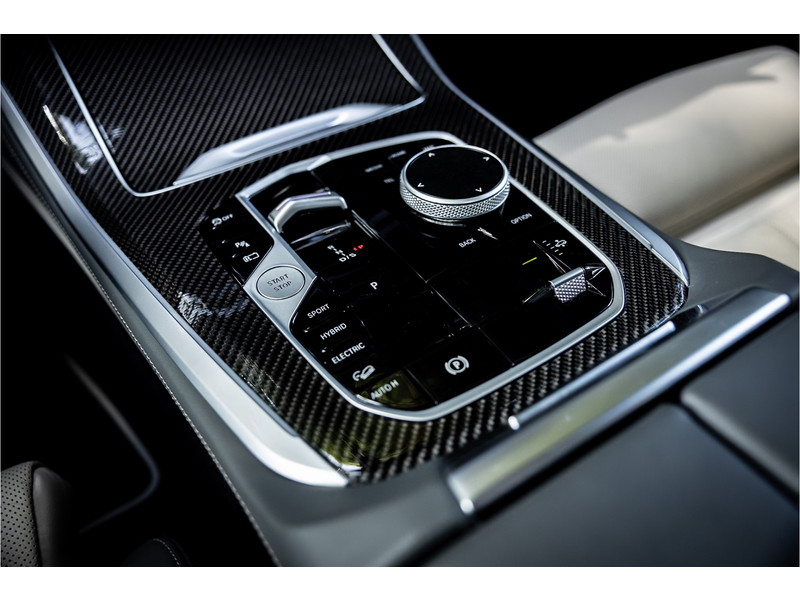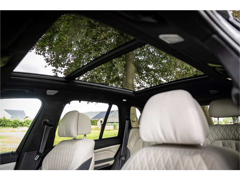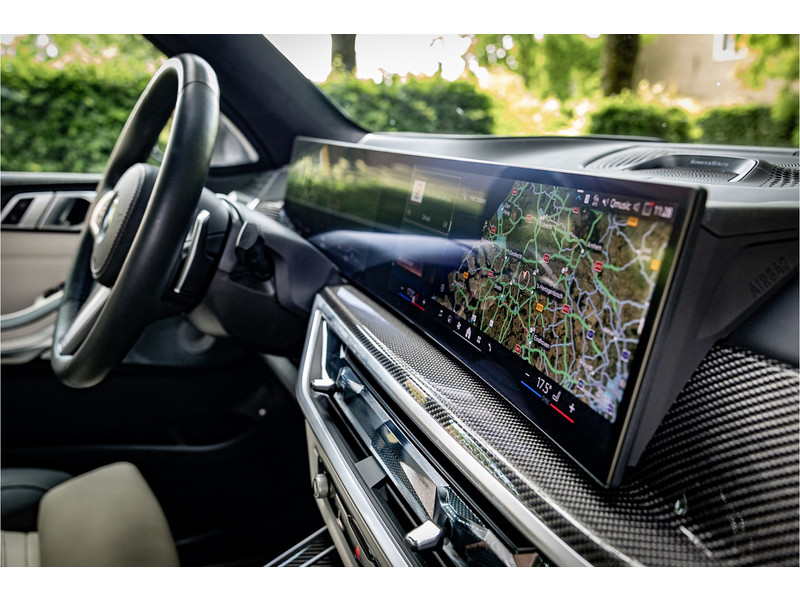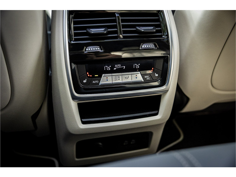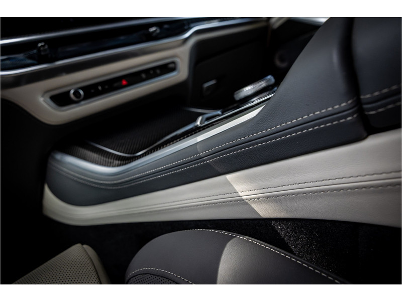 Tot de verdere uitrusting behoort vierwielbesturing (meesturende achterwielen op hoge snelheid voor meer koersvastheid en tegensturende achterwielen op lage snelheid voor kortere draaicirkel in de bebouwde kom), Bowers & WIlkins Surround Diamond audio, soft close portieren, 22" dubbelspaak 742 M velg, stoelventilatie op voorstoelen, verwarmbare / koelbare bekerhouders, head up display, 4 zone airco, Iconic Glow verlichte grille, akoestisch geluidsisolerend glas, Driving Assistant Professional met adaptive cruise control en zelfsturende functie, luchtvering met niveauregeling, comfort access (keyless entry), BMW Gesture Control, LED koplampen met adaptieve lichtverdeling, 360 graden camera met remote 3D View, dode hoek assistent, actieve spoorassistent, draadloos laden voor smartphone, achteruitrijcamera, comfortstoelen met memory functie, DAB-tuner, navigatiesysteem Professional en speed limit weergave, uitgebreide bluetooth telefoonvoorbereiding met audiostreaming, verwarmbare voorstoelen, verwarmbare zitplaatsen achter, verwarmbaar stuurwiel, travel pakket met universele aansluiting voor tablets en andere accessoires in achterzijde van voorstoelen, dakdraagsysteem hoogglans shadow line, extra getint glas achter, elektrisch bedienbare achterklep, automatische klimaatregeling met gescheiden zones voor en achter, elektrisch inklapbare buitenspiegels en multimedia aansluitingen.