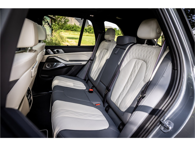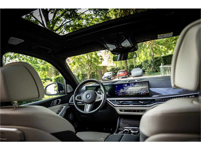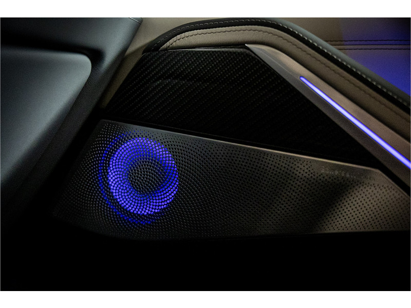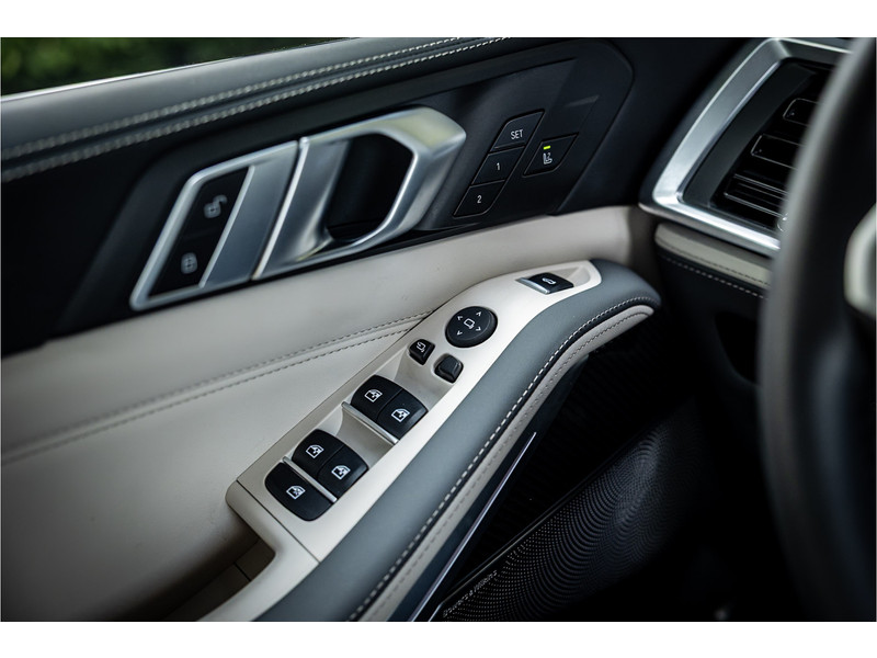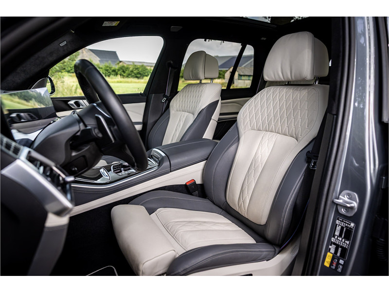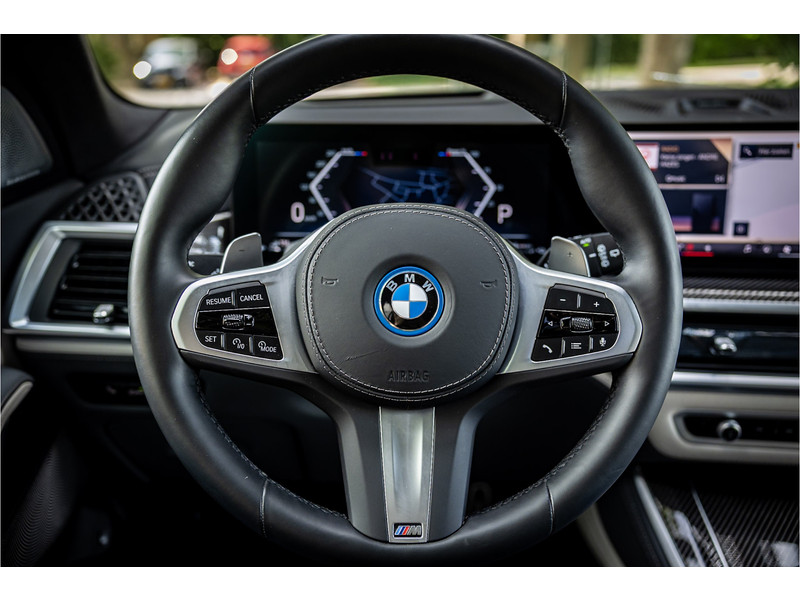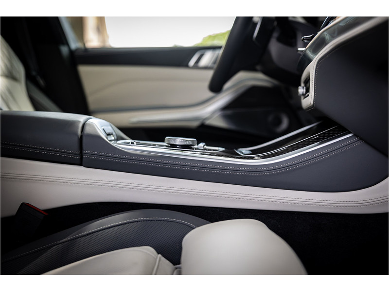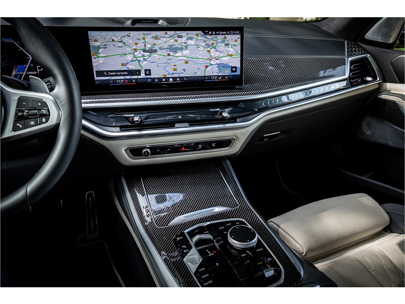 Tot de verdere uitrusting behoort vierwielbesturing (meesturende achterwielen op hoge snelheid voor meer koersvastheid en tegensturende achterwielen op lage snelheid voor kortere draaicirkel in de bebouwde kom), Bowers & WIlkins Surround Diamond audio, soft close portieren, 22" dubbelspaak 742 M velg, stoelventilatie op voorstoelen, verwarmbare / koelbare bekerhouders, head up display, 4 zone airco, Iconic Glow verlichte grille, akoestisch geluidsisolerend glas, Driving Assistant Professional met adaptive cruise control en zelfsturende functie, luchtvering met niveauregeling, comfort access (keyless entry), BMW Gesture Control, LED koplampen met adaptieve lichtverdeling, 360 graden camera met remote 3D View, dode hoek assistent, actieve spoorassistent, draadloos laden voor smartphone, achteruitrijcamera, comfortstoelen met memory functie, DAB-tuner, navigatiesysteem Professional en speed limit weergave, uitgebreide bluetooth telefoonvoorbereiding met audiostreaming, verwarmbare voorstoelen, verwarmbare zitplaatsen achter, verwarmbaar stuurwiel, travel pakket met universele aansluiting voor tablets en andere accessoires in achterzijde van voorstoelen, dakdraagsysteem hoogglans shadow line, extra getint glas achter, elektrisch bedienbare achterklep, automatische klimaatregeling met gescheiden zones voor en achter, elektrisch inklapbare buitenspiegels en multimedia aansluitingen.