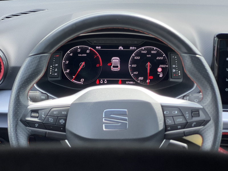 Altijd de benodigde functies in beeld? Het digitale dashboard zorgt ervoor. Onder alle omstandigheden perfect zicht op wat zich achter de auto afspeelt: de achteruitrijcamera zorgt ervoor! Adaptive cruise control houdt de ingestelde snelheid vast en houdt automatisch afstand tot uw voorligger. De file assistent verzacht het fileleed door automatisch veilig afstand te houden tot de voorligger en zo nodig zelfs te stoppen als de rij tot stilstand komt. Functies activeren en storingen opsporen? Bij deze auto gaat het eenvoudig via uw smartphone. Overal en altijd. Deze SEAT is voorzien van navigatiesysteem, automatische airconditioning, DAB ontvangst, regensensor, automatisch dimmende binnenspiegel en lederen stuur.