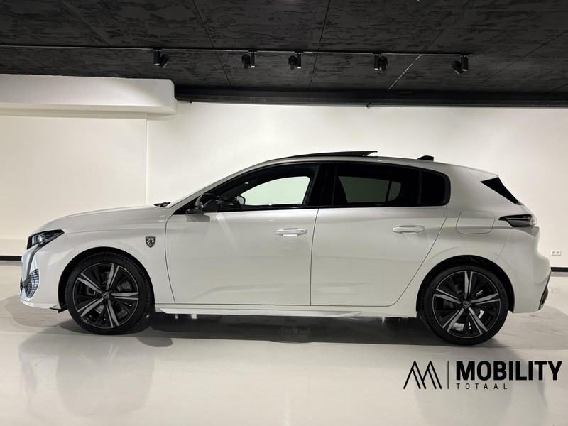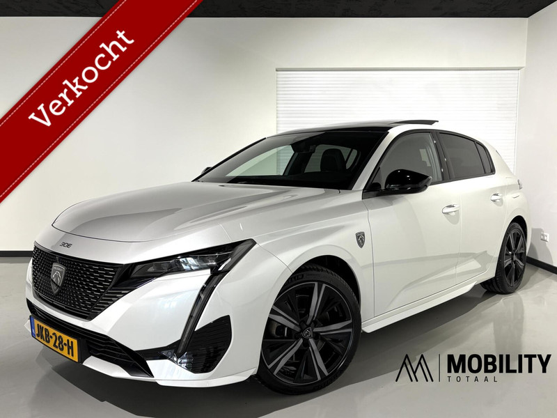 Bijzonder mooie en complete Peugeot 308 GT Plug-in Hybride 180pk automaat. In de prachtige kleur: Blanc Nacre (parelmoer wit) in combinatie met een hoogglans zwarte delen (Black pack) krijgt de auto een stoer en sportief uiterlijk! De Peugeot 308 is een zeer luxe GT uitvoering en bezit zeer veel fijne opties. Waaronder een Panorama schuif/kantel dak, 360 graden camera, Leder/alcantara GT bekleding, Grootscherm Navigatiesysteem, Virtual 3D cockpit, Voor + Achteruitrijcamera, parkeersensoren, Lane assist, Side assist Adaptieve Cruise control, Climate control, Apple carplay, Led koplampen, Led achterlichten en nog veel meer. Deze auto verkeert in uitstekende staat.