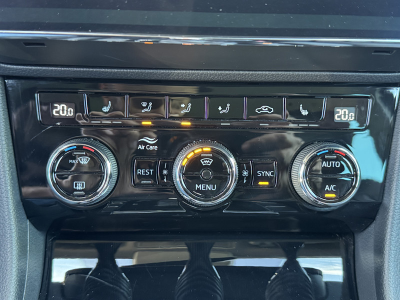 Overzichtelijk en veilig parkeren met de achteruitrijcamera. Overal en altijd. Adaptive cruise control houdt de ingestelde snelheid vast en houdt afstand tot het voertuig voor u. Je ziet hem niet, maar hij is er wel: de elektrisch inklapbare trekhaak. Deze auto gaat met u in gesprek. Hij vertelt u dankzij remote services alles over de status van diverse onderdelen en laat zich desgevraagd ook activeren. Gewoon via uw smartphone. Een goede veiligheidsvoorziening is de stuurbediening voor belangrijke functies. De auto is natuurlijk voorzien van een navigatiesysteem met harde schijf en het audio-installatiesysteem biedt glasheldere geluidskwaliteit dankzij DAB-ontvangst. De uitrusting van deze ŠKODA is met WIFI-hotspot, achteropkomend verkeer waarschuwing, automatische airconditioning, sportstuur met schakelpaddels, draadloos opladen en regensensor behoorlijk compleet.