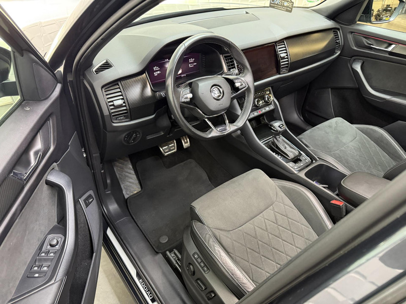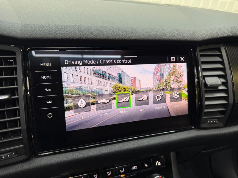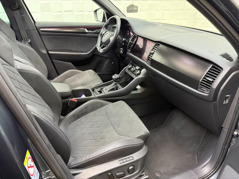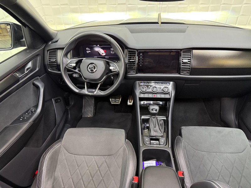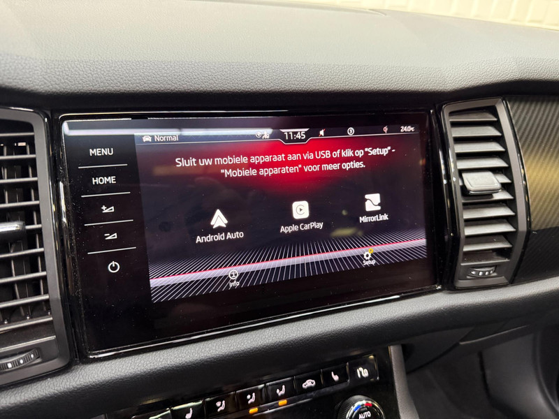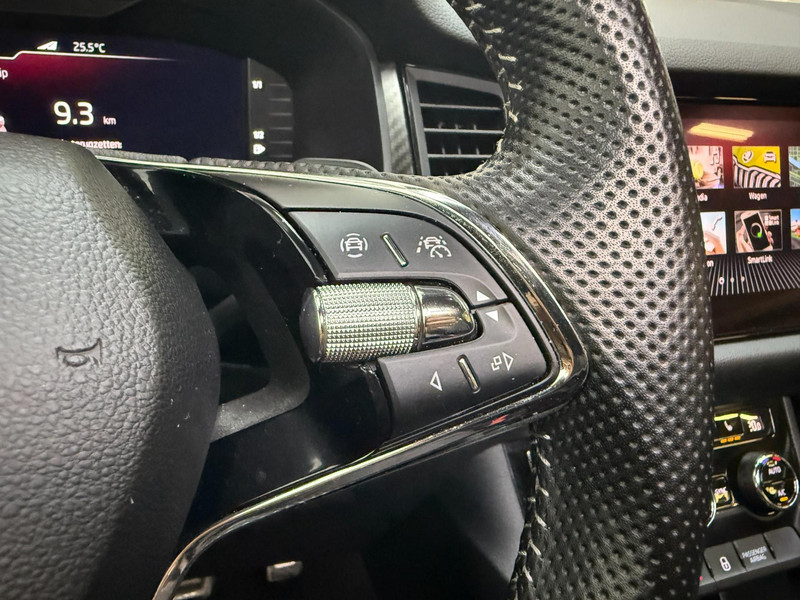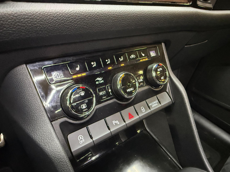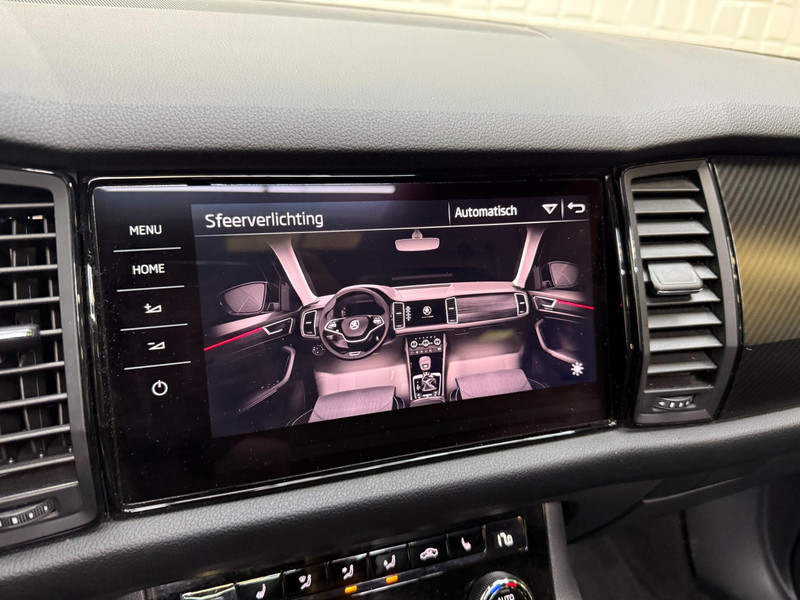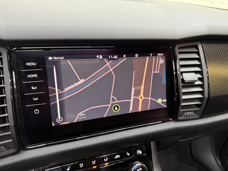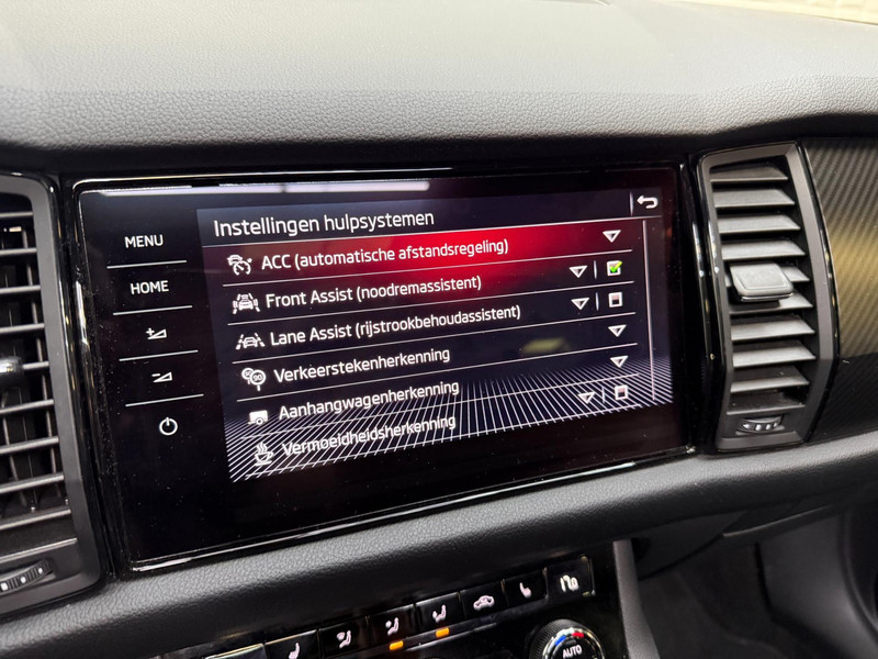 De standkachel verwarmt het interieur voor. Dat betekent meer comfort voor u en minder slijtage voor de auto. Het digitale dashboard geeft alle up-to-date info en functies voor een slimme en veilige rit. Adaptive cruise control is een comfortabele en veilige optie. Het systeem reguleert de snelheid en houdt automatisch afstand tot uw voorligger. In deze Kodiaq vindt u schakelaars op het stuur om het audio-installatiesysteem te bedienen en het origineel navigatiesysteem. Parkeerplekken worden er niet ruimer op. Maar met de aanwezige parkeersensoren krijgt u deze Skoda Kodiaq zonder problemen op z'n plaats. Ook automatische airconditioning, schakel flippers aan het stuur, keyless entry, buitentemperatuurmeter, automatisch dimmende buitenspiegels en isofix-aansluiting zijn aan boord.