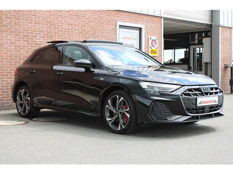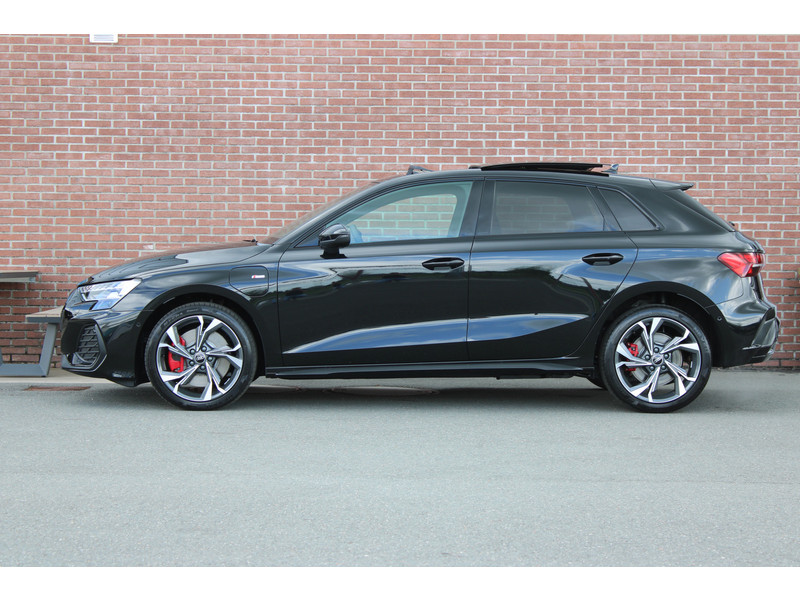 Een nieuwe Audi A3 met originele 272PK Hybride-motor met automaat en o.a. Panoramadak, Matrix led koplampen, elektrisch bedienbare stoel, adaptieve cruise control en een elektrische achterklep.