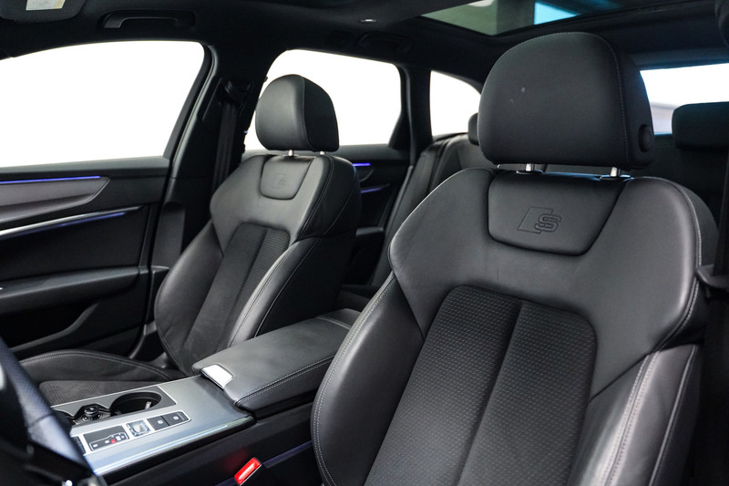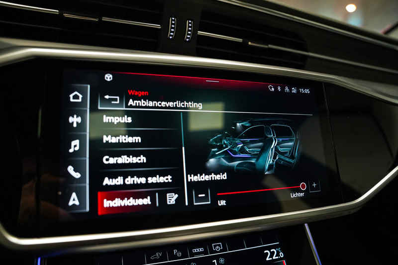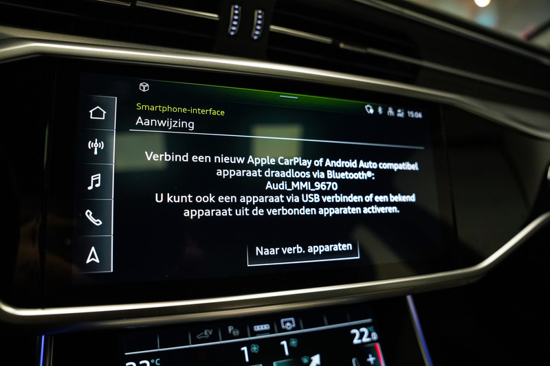Een prachtige Audi A6 50e hybrid S-Line afkomstig van de Audi dealer met o.a. zwart optiek, led, 20 inch, leder/alcantara sportstoelen, panorama dak, Bang & Olufsen audio, adaptive cruise control, sfeerverlichting, apple car play en een elektrische klep. *Wij voorzien de auto van een kosteloze achteruitrijcamera (origineel).