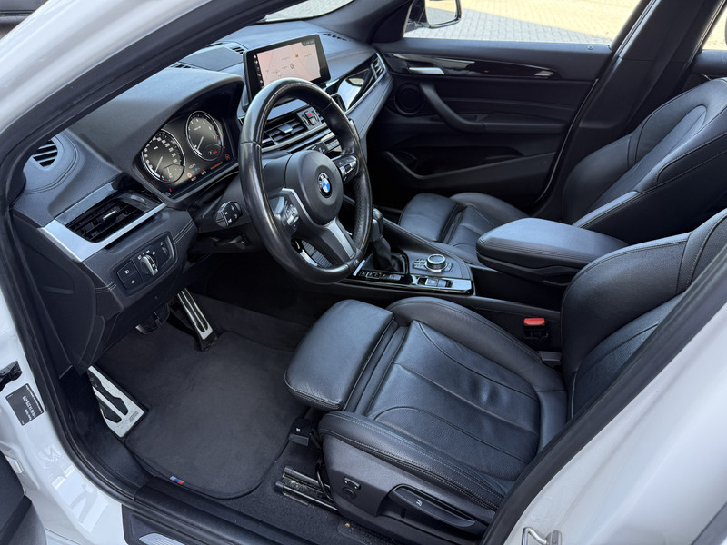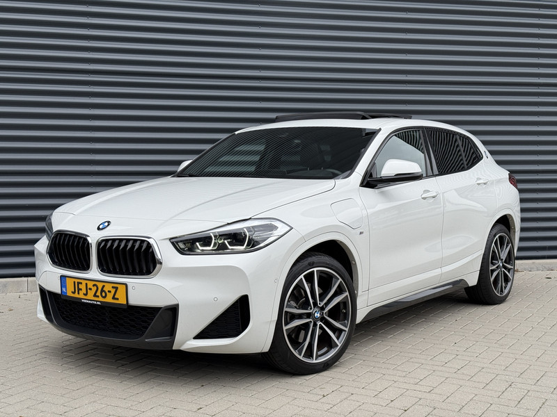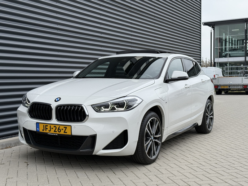 Schitterende BMW X2 xDrive25e M-Sport Shadow in Alpin Wit metallic met 19 inch licht metalen velgen. De BMW beschikt over veel mooie opties zoals: Panorama dak, achteruitrijcamera, keyless entry and go, Head Up display, lederen bekleding, leder dashboard, stoel en stuurverwarming, sport-comfort stoelen met lende steun verstelling, adaptieve cruise control, full map navigatie, parkeersensoren voor + achter met parkeer assistent, LED sfeer interieur verlichting, etc..
