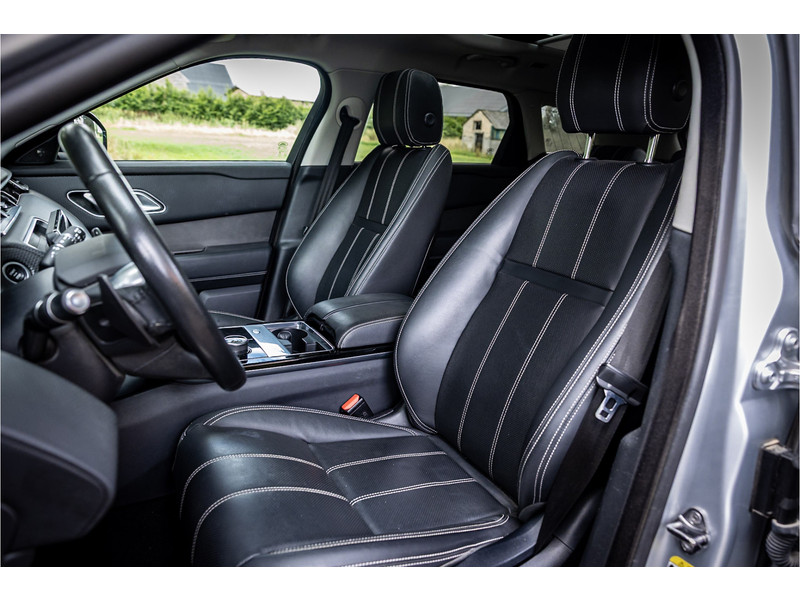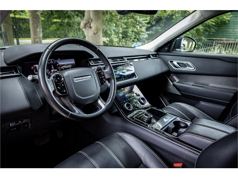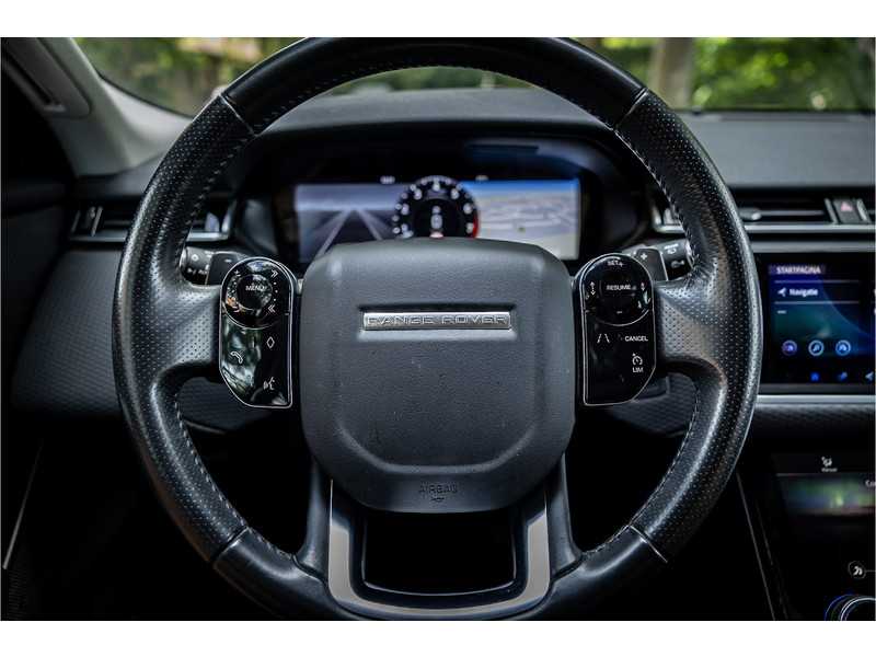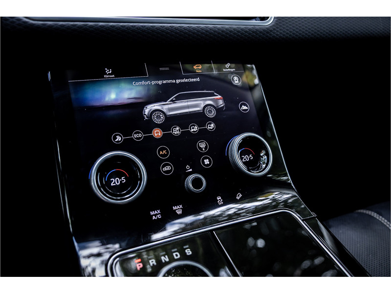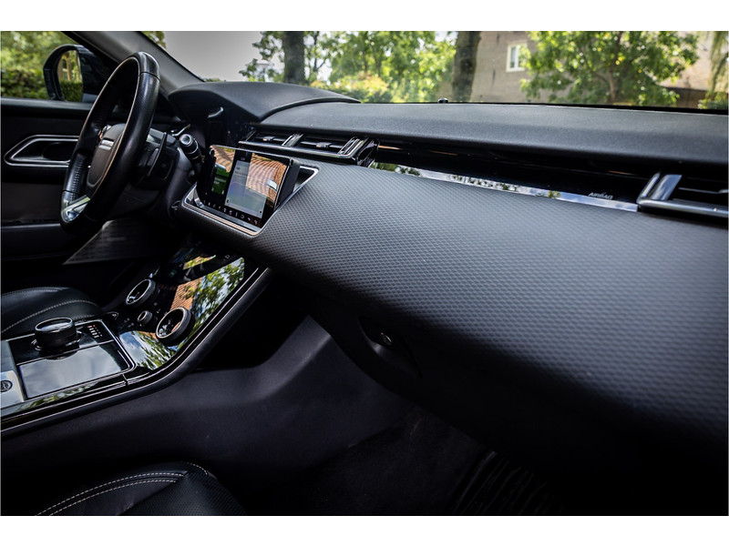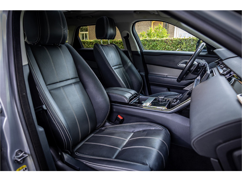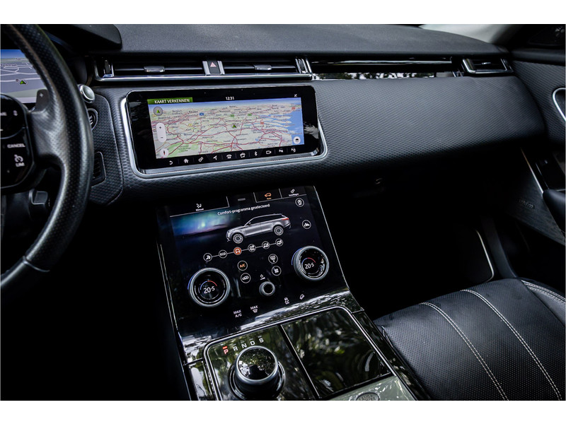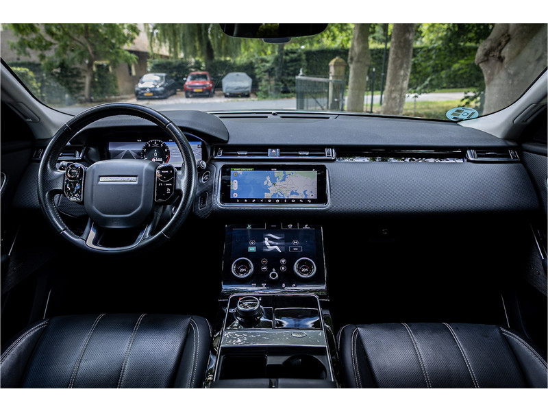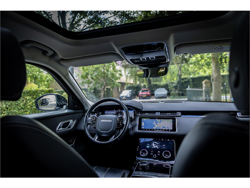 Deze Velar is compleet uitgerust met een glazen panoramadak dat elektrisch geopend kan worden, adaptive cruise control met stop en go functie, dode hoek assistent, Meridian Premium Signature Surround audiosysteem met 750 Watt en 16 luidsprekers en subwoofer, 20" Satin Black velgen, elektrisch verstelbare stoelen met memory functie voor bestuurder, keyless entry en start, verkeersbordtekenherkenning, privacy glas achter, navigatiesysteem met touchscreen, bluetooth telefoonintegratie, LED mistlampen vooraan, shadow aluminium interieurafwerking, elektrisch inklapbare buitenspiegels, automatische klimaatregeling met gescheiden zones.