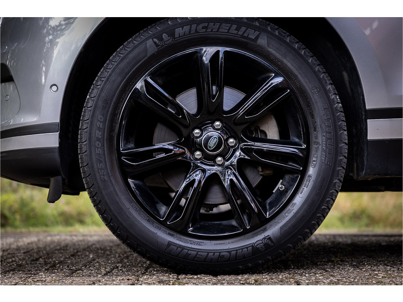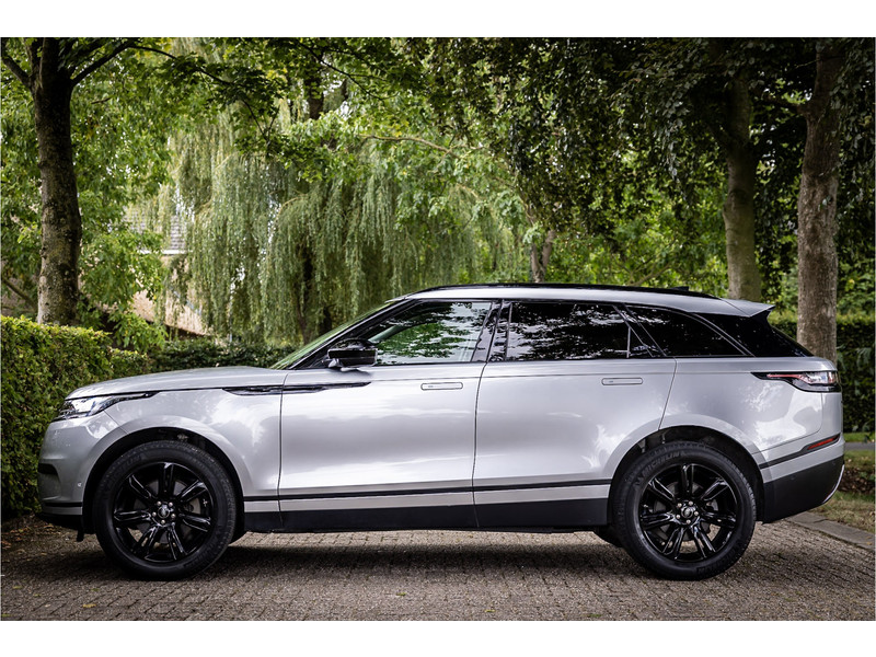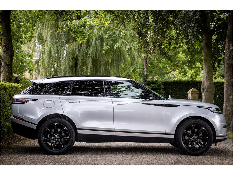 Fraaie Range Rover Velar met krachtige 300 PK benzinemotor. Deze auto is volledig Land Rover dealer onderhouden. Lakkleur is Rhodium Silver metallic en het interieur is bekleed met zwart leder. Aan de buitenzijde is het Premium Black Exterior Pack zichtbaar waarbij de belettering op de auto en sierlijsten in hoogglans zwart zijn uitgevoerd.