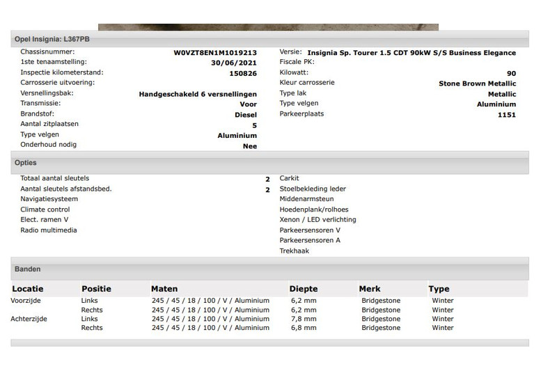 Het kan echter voorkomen dat uit de automatische voertuiginformatie een optie of accessoire naar voren komt die helaas toch niet op de auto aanwezig is.