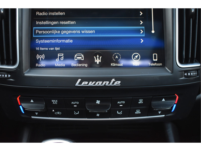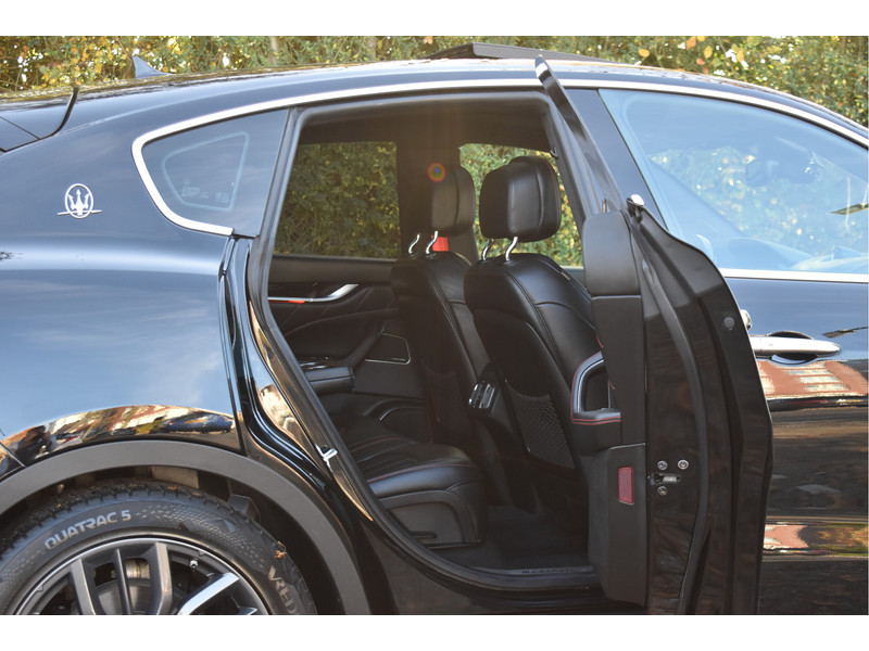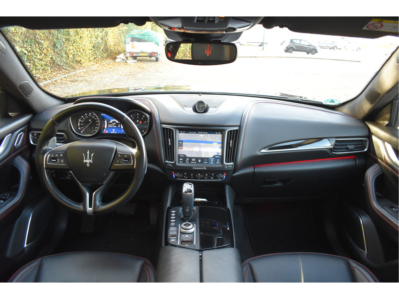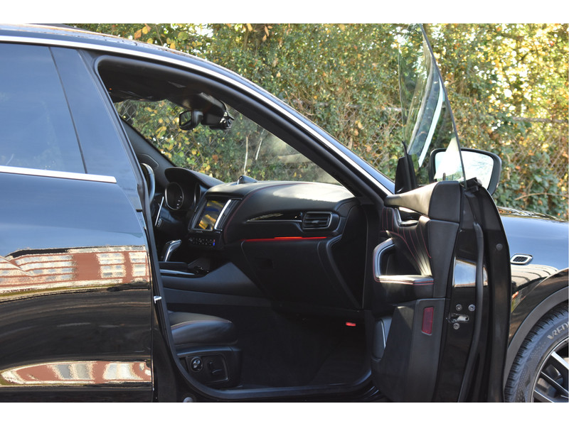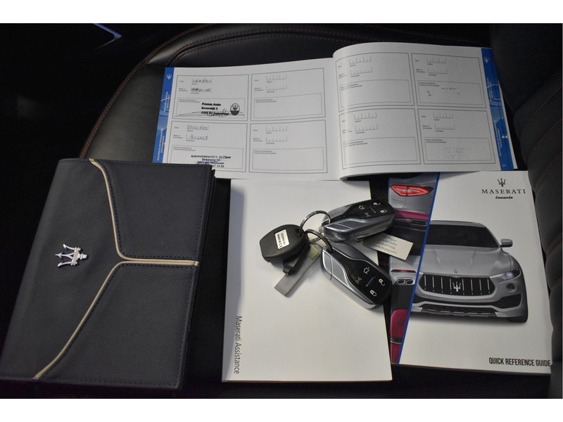 Wij mogen dit schitterende volbloed Italiaanse raspaard aanbieden: deze dikke en exclusieve Maserati Levante 3.0 V6 met een heerlijk vermogen van 350 PK, wat het tot een geweldige maakt om met deze auto te rijden, mede door de volledig instelbare luchtvering. De auto is rijkelijk uitgerust met o.a. Adaptieve Cruise Control met assistent, Elektrisch verstelbare voorstoelen incl.Memory bestuurder en Maseratilogo's in de hoofdsteunen, een prachtig zwart Lederen interieur met rode gordels, Stoelverwarming, Navigatie, Apple Carplay / Androidauto, Bluetooth voor audio & telefonie, DAB Radio, Panoramisch schuif-/kanteldak, Keyless entry, Achteruitrijcamera, Parkeersensoren rondom, fraaie LED / Xenon verlichting rondom, dikke 20" LM-Velgen en alle Originele boekjes en sleutels.