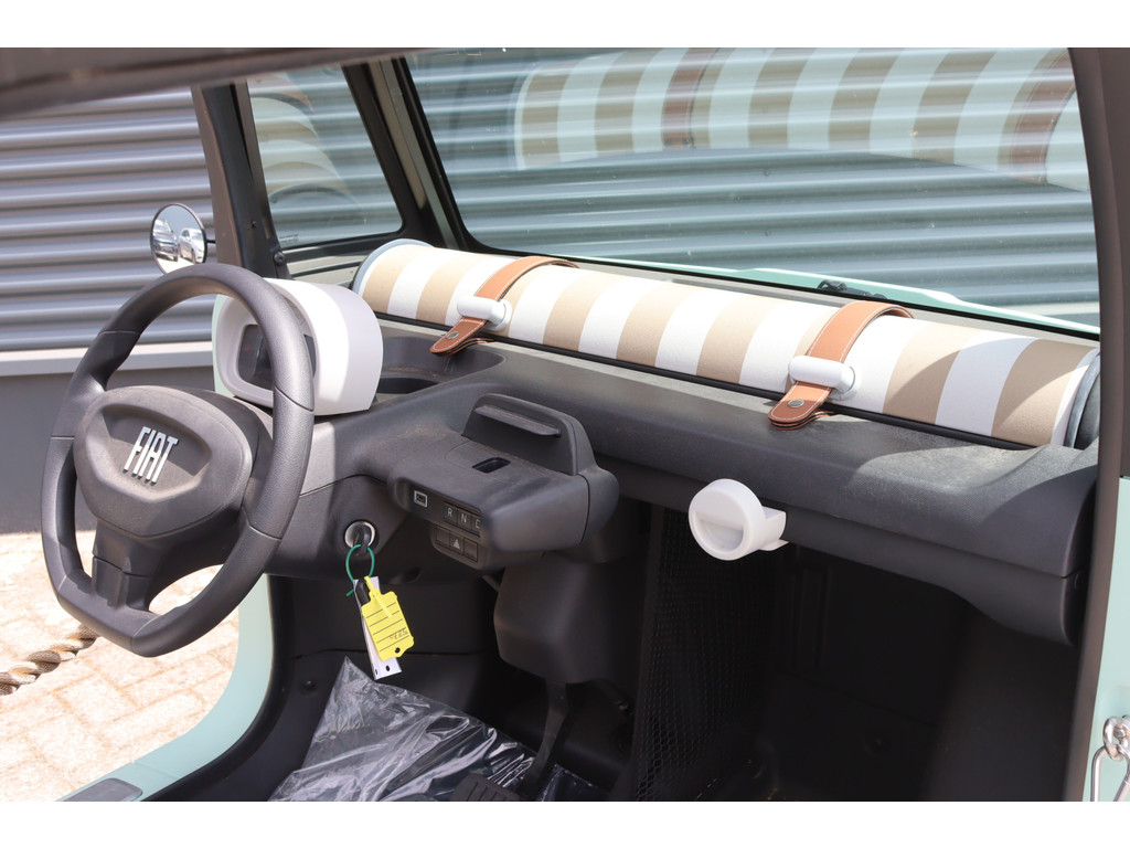 Direct uit voorraad leverbaar! Compact van formaat, groots in plezier! Stap in vanaf 16 jaar, de ideale stadsauto gekeurd als brommobiel. 100% opgeladen in minder dan 4 uur, gewoon via een standaard stopcontact. De Topolino heeft een actieradius tot 75 kilometer (WLTP) en bereikt een maximale snelheid van 45 km/u. Dolcevita uitvoering met instaplijsten, rieten deurkoord en het stoffen roldak!