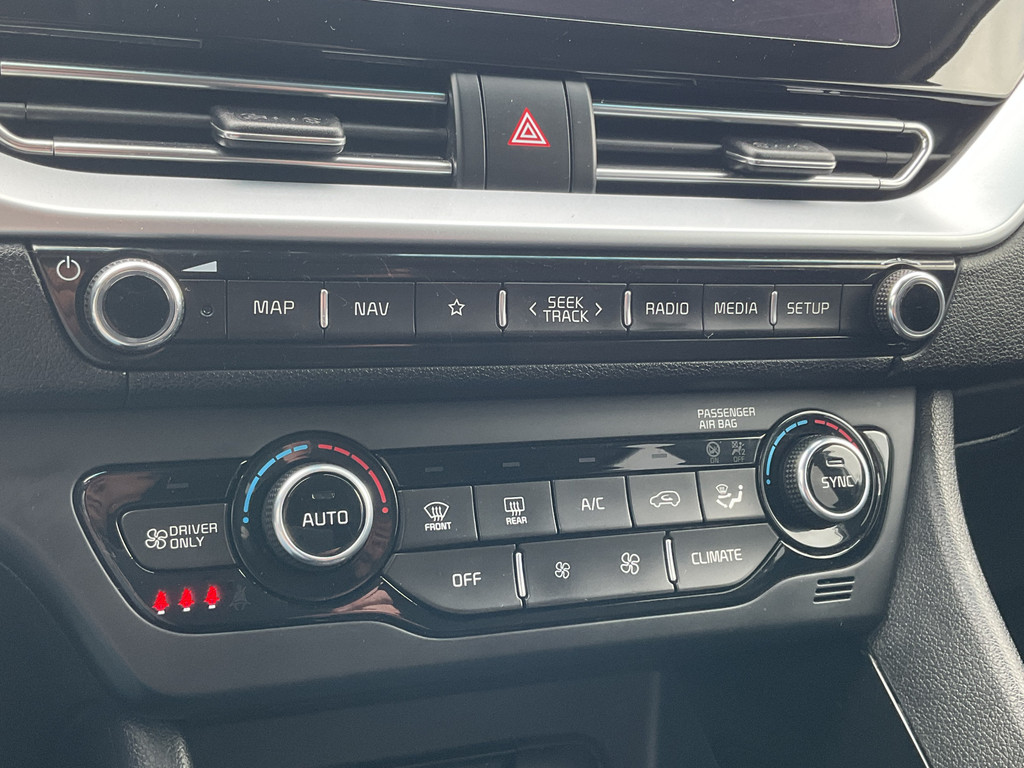 Nooit meer problemen bij achteruitrijden of inparkeren. De achteruitrijcamera houdt alles in de gaten! Met adaptive cruise control houdt deze auto automatisch afstand tot uw voorligger. U kunt het audiosysteem met DAB-ontvangst en het full map navigatiesysteem bedienen met de knoppen op het stuur. De automatische airconditioning zorgt onder alle omstandigheden voor een prettige temperatuur. De automatisch inschakelbare verlichting en regensensor zorgen dat onderweg automatisch de verlichting en de ruitenwissers worden ingeschakeld. Daarmee nemen ze u veel werk uit handen. Deze Kia is voorzien van sportstuur met schakelpaddels, automatisch dimmende binnenspiegel, centrale deurvergrendeling met afstandsbediening, bagage afdekhoes en lederen versnellingspook.