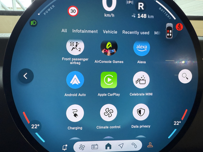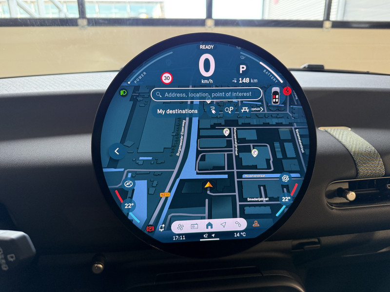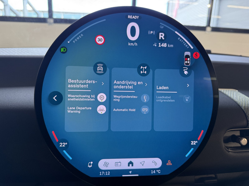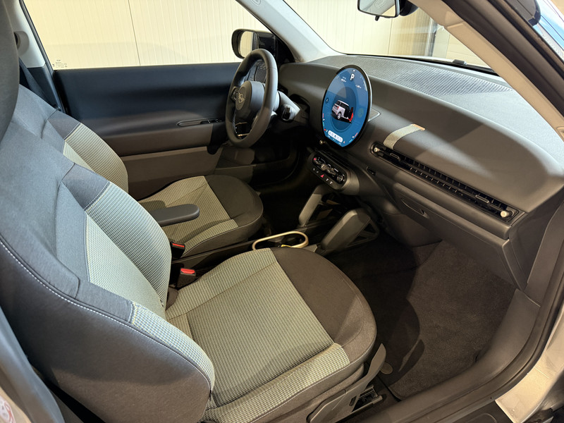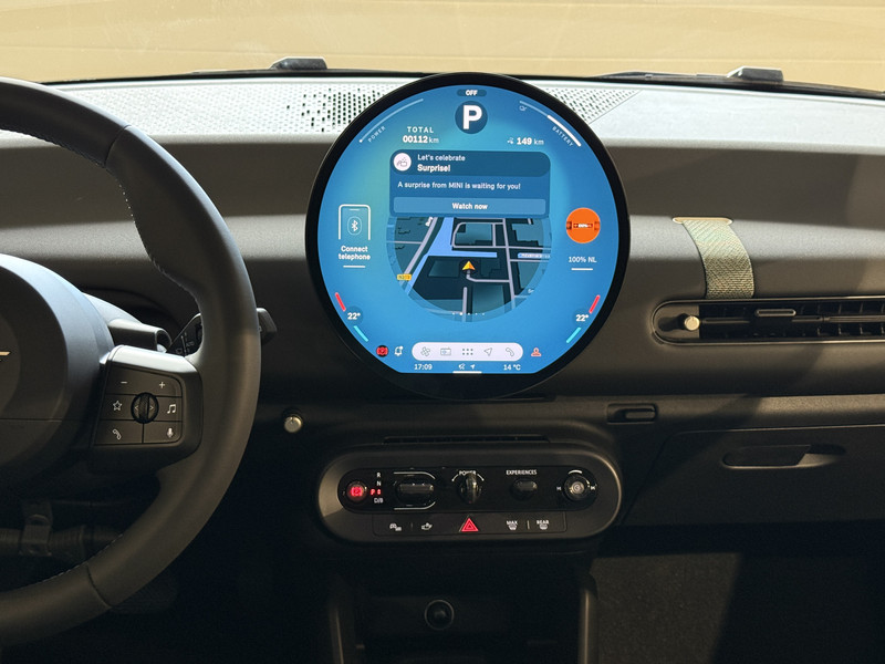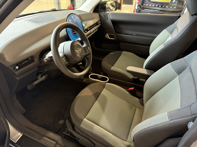 Nieuwe Mini Cooper E in Melting Grey metallic voorzien van veel mooie opties zoals: Achteruitrijcamera, navigatie, Apple Carplay/Android Auto, cruise control, PDC voor + achter, climate control, privacy glas, etc..