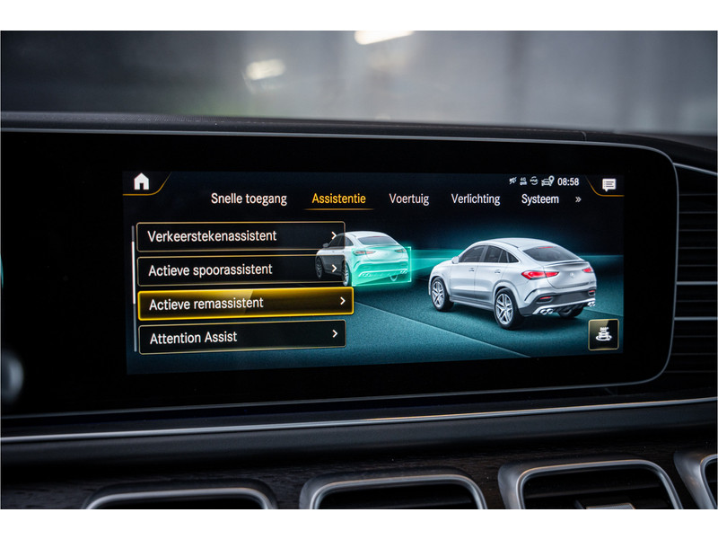 De geavanceerde technologie in deze Mercedes-Benz is in staat om onderweg het verkeer om u heen te monitoren en er op te reageren. Zo hebt u als het ware een automatische co-piloot aan boord. Bij de veiligheidssystemen van deze auto hoort ook de verkeersbord-detectie. Die leest tijdens het rijden als het ware met u mee en attendeert u op de significante verkeersborden langs en boven de weg. Deze Mercedes-Benz GLE-klasse Coupé is ook behulpzaam als het gaat om een rechte koers. Het Lane-keeping systeem signaleert en corrigeert als u onbedoeld de rijstrooklijnen dreigt te overschrijden. Hoe goed u ook oplet in het verkeer, de dode hoek blijft een risico. Gelukkig is deze Mercedes-Benz GLE-klasse Coupé voorzien van actieve dodehoekdetectie. De veiligheid van deze auto wordt verder verhoogd door forward collision warning system, hill hold functie, vermoeidheidsherkenning, autonoom remsysteem en bandenspanningcontrolesysteem.