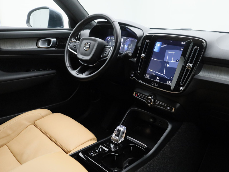 Met zijn strakke vormgeving, zijn hoge veiligheidsniveau en het geweldige comfort van deze Volvo XC40, onderscheidt deze auto zich van de massa. Zuinig rijden, minder uitstoot, maximale radius. Door de hybride motor die elektrisch én benzinerijden mogelijk maakt is dit de ideale combi. Fraai hoor, zo'n lederen interieur. En door de gemakkelijk elektrisch bedienbare achterklep bent u snel overtuigd van deze auto. Ook 19 inch lichtmetalen velgen, LED koplampen, zwarte hemelbekleding, in hoogte verstelbare voorstoelen, donker getint glas achter en in delen neerklapbare achterbank horen tot de voorzieningen op deze auto.