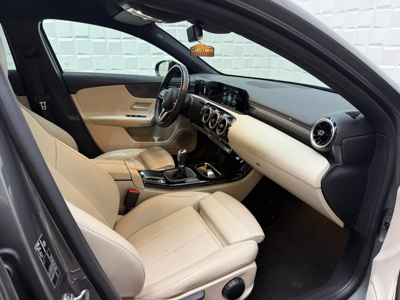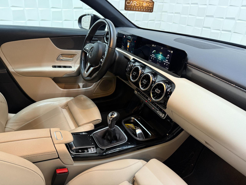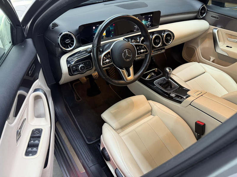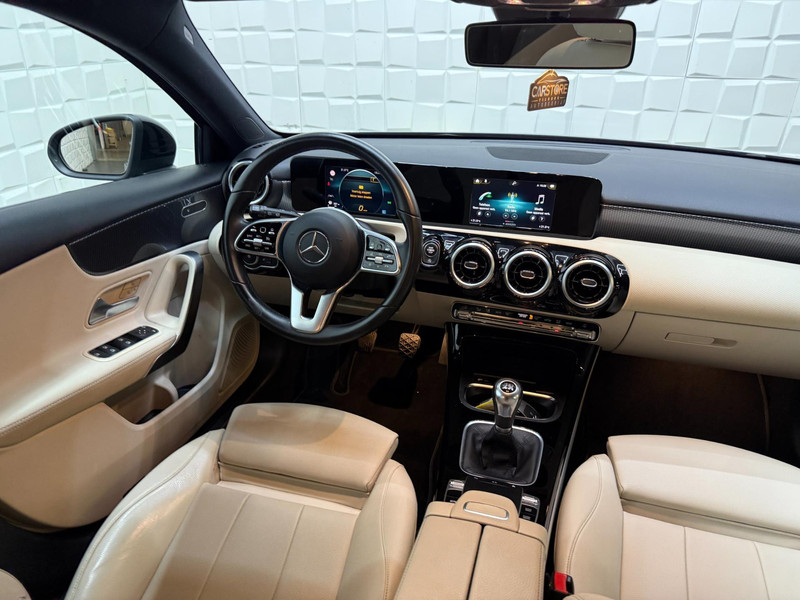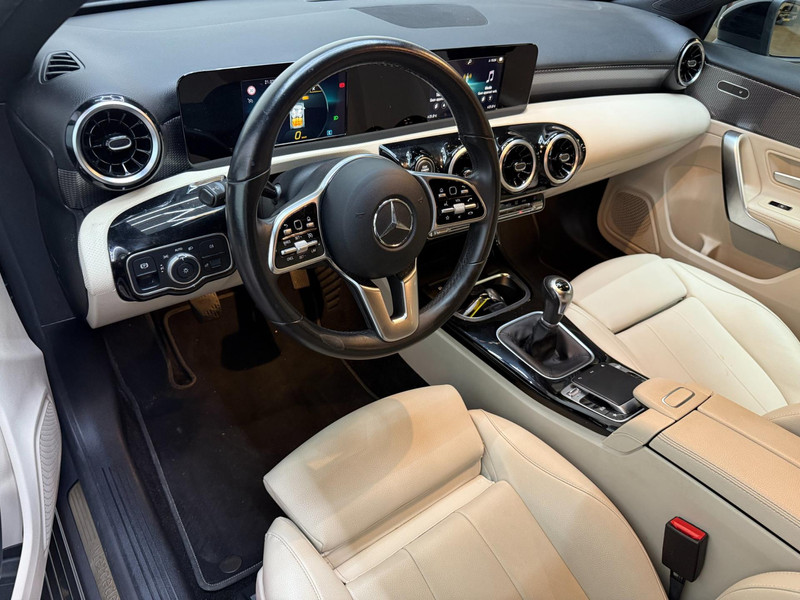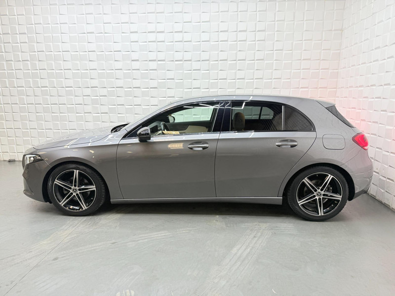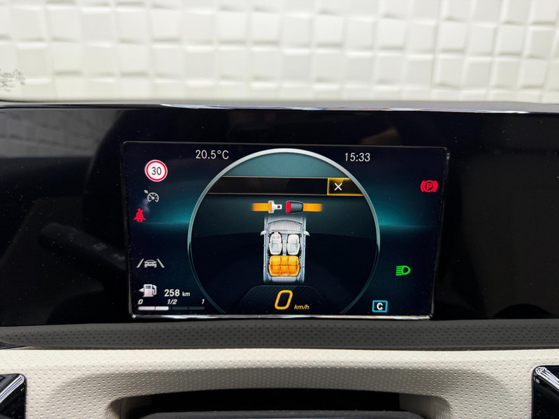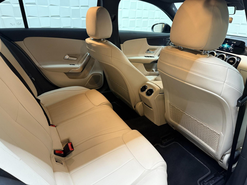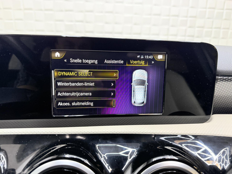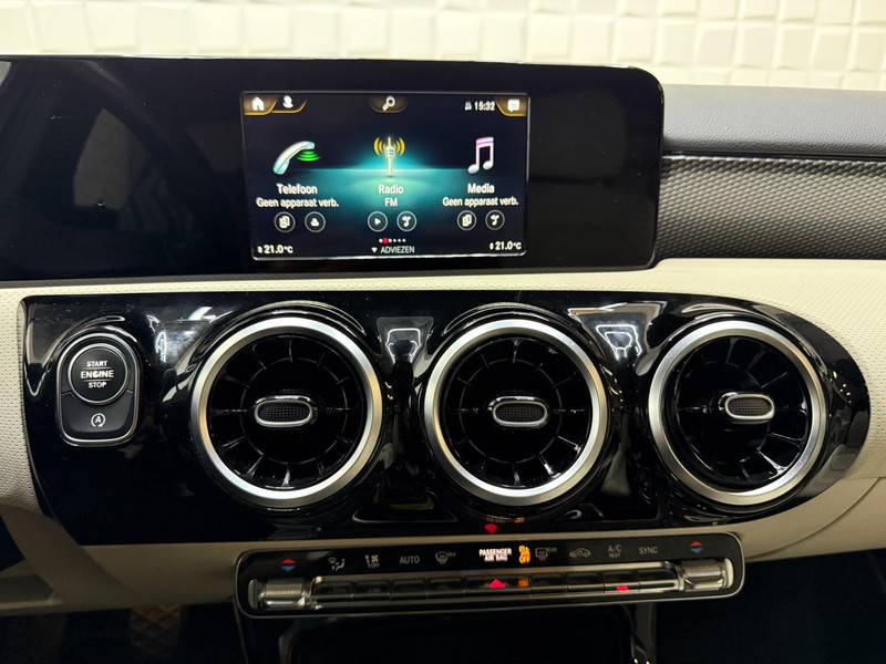 Twijfelen hoeveel ruimte u achter de auto heeft? Met de achteruitrijcamera weet u altijd hoeveel centimeter! Een veiligheidsverhogende optie is de ingebouwde spraakbediening. Terwijl u uw ogen op de weg houdt, bedient u de auto met uw stem. Deze Mercedes-Benz A-klasse is 'connected'. Belangrijke functies worden permanent gemeten en zijn uit te lezen via een speciale app, ook op afstand. Zuinig, veilig en ontspannen op pad: dat kan dankzij het aanwezige navigatiesysteem met harde schijf. Natuurlijk is er ook automatische airconditioning aanwezig. Deze auto is voorzien van regensensor, cruise control, keyless Go, buitentemperatuurmeter, automatisch dimmende buitenspiegels en lederen stuur.