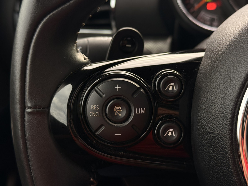 Parkeer en kijk niet om! De achteruitrijcamera doet dat voor u. Adaptive cruise control is een comfortabele en veilige optie. Het systeem reguleert de snelheid en houdt automatisch afstand tot uw voorligger. Vanaf elke plek contact maken met deze auto: dat kan met behulp van remote services, die u simpel activeert met uw smartphone. Dankzij het Harman/Kardon audiosysteem beluister u muziek alsof u er 'live' bij bent. Of het buiten nu warm is of koud, dankzij automatische airconditioning is het binnen altijd behaaglijk. U bent in deze MINI ook voorzien van dashboard met spraakbediening, Harman Kardon-audiosysteem, navigatiesysteem met harde schijf, schakelpaddles aan het stuur, DAB ontvangst en regensensor.