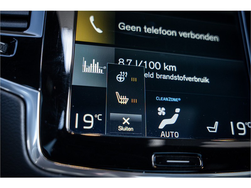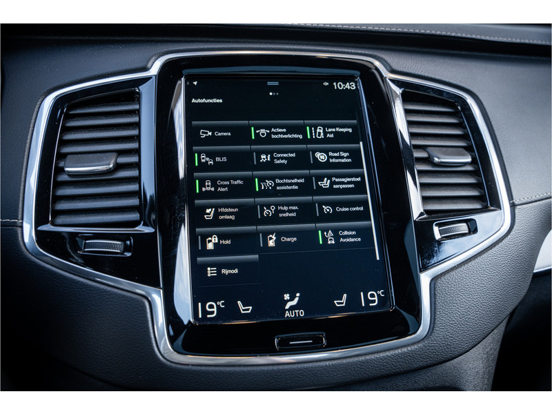 Deze auto is voorzien van innovatieve systemen die u onderweg begeleiden en beschermen. Verkeersbord-detectie herkent verkeersborden en toont deze op het instrumentarium van de auto. Deze Volvo XC90 is ook behulpzaam als het gaat om een rechte koers. Het Lane-keeping systeem signaleert en corrigeert als u onbedoeld de rijstrooklijnen dreigt te overschrijden. De actieve dodehoekdetectie helpt ongelukken te voorkomen. Dankzij veiligheidsvoorzieningen als forward collision warning system, hill hold functie, brake assist, vermoeidheidsherkenning en bandenspanningcontrolesysteem, bent u steeds veilig onderweg.