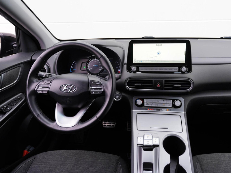 Hightech elektronica en emissievrij rijden komen samen in de Hyundai Kona. Deze auto biedt een onvergelijkbare rijbeleving dankzij de volledig elektrische aandrijflijn. Met de combinatie van elektrische aandrijving en automatische transmissie manoeuvreer je soepel door het verkeer. Natuurlijk behoren 17 inch lichtmetalen velgen, LED koplampen, donker getint glas achter, in delen neerklapbare achterbank, LED-achterlichten en verstelbare lendensteunen ook tot de uitrusting van deze complete auto.