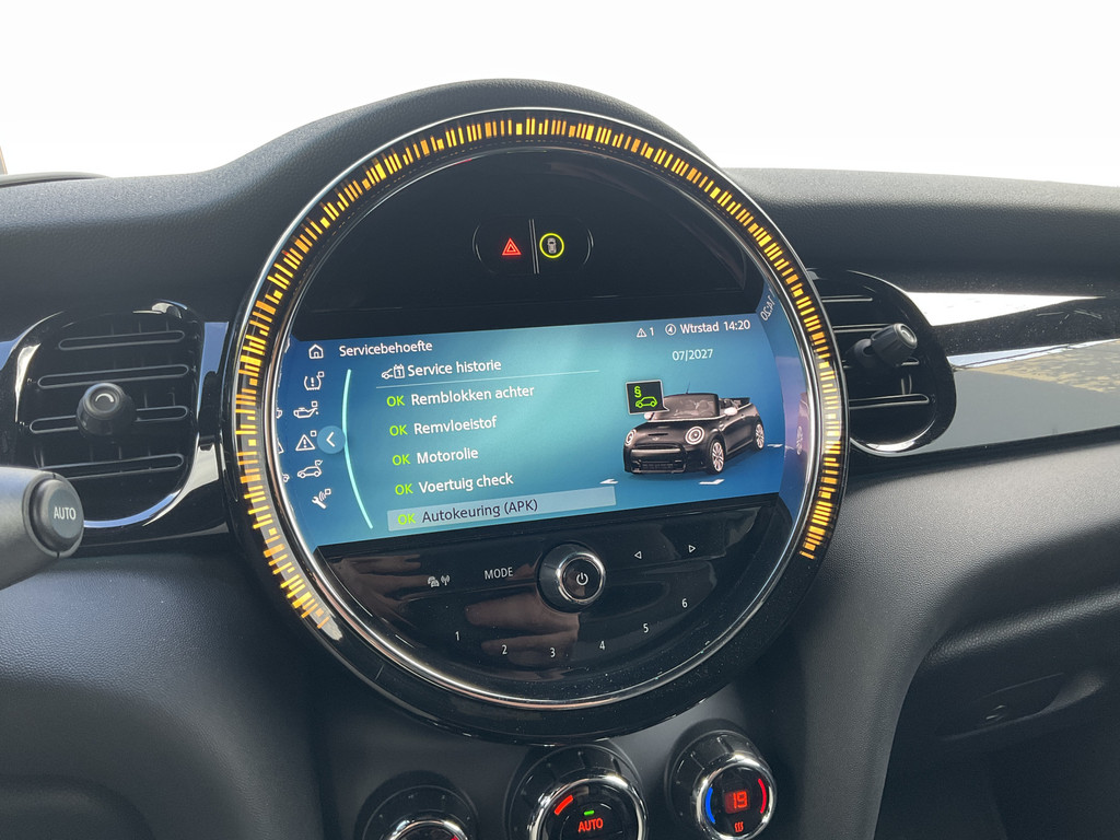 Locatie, motorconditie, storingen... via Connected Services krijgt u alle vitale info over de auto door. Ook handig bij pech! U kunt bij het inparkeren natuurlijk niet aan alle kanten ogen hebben. Daarom is deze MINI Cabrio voorzien van parkeersensoren! Om de veiligheid onderweg te verhogen, heeft deze MINI zowel een automatisch inschakelbare verlichting als een regensensor aan boord, zodat hij zelf de verlichting en de ruitenwissers kan inschakelen. Met cruise control rijdt u rustiger en meer ontspannen, en bovendien zuiniger. Vergeet uw autosleutels! Met de keyless start instappen en starten is veel makkelijker. De uitrusting van deze auto is met WIFI-hotspot, DAB ontvangst, sportstuurwiel, airconditioning, buitentemperatuurmeter en centrale deurvergrendeling met afstandsbediening behoorlijk compleet.
