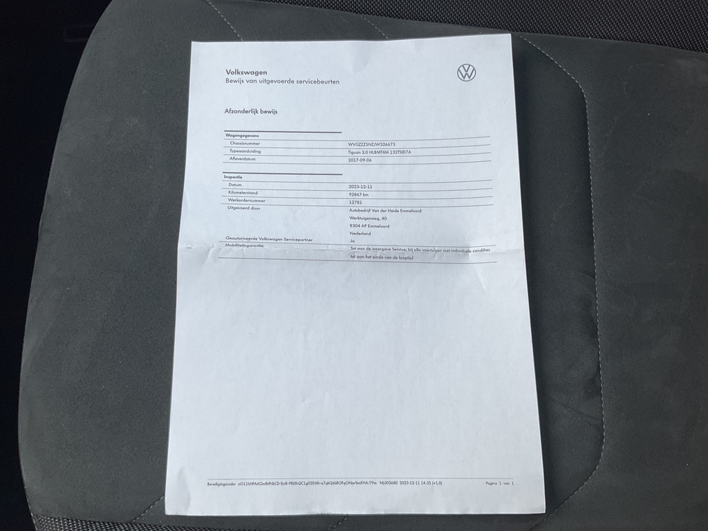 - Onderhoudsboekje aanwezig
