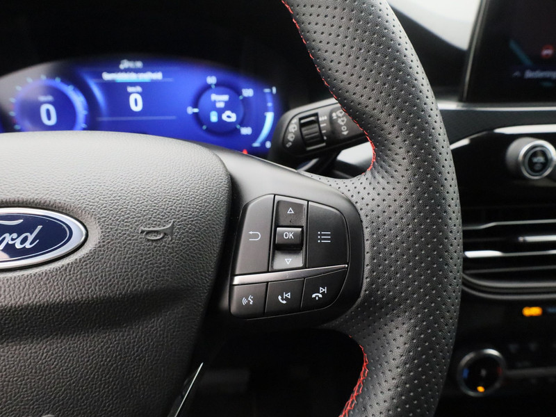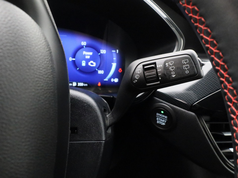 Praktisch, helder en uitermate handig is het digitale dashboard. Alle functies haarscherp in beeld! Hoeveel ruimte heeft u nog bij het inparkeren? De achteruitrijcamera brengt helder in beeld wat zich achter de auto bevindt en geeft een geluidssignaal. Spraaksturing betekent dat u verschillende functies met uw stem kunt bedienen. De kortste weg, de zuinigste weg, de snelste weg... elke weg is te vinden met het full map navigatiesysteem. De achteropkomend verkeer waarschuwing bewaakt de afstand tot achterliggers en geeft een signaal als er te weinig ruimte is. Ook is de Ford uitgerust met: automatische airconditioning, DAB ontvangst, regensensor, cruise control, sportstuurwiel en keyless entry.