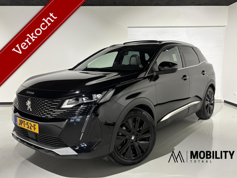 Bijzonder mooie en complete Peugeot 3008 GT Plug-in Hybride 225pk automaat. In de prachtige kleur: Noir Perla Nera (zwart metallic) in combinatie met het GT Pack en hoogglans zwarte 19 inch velgen krijgt de auto een stoer en sportief uiterlijk! De Peugeot 3008 is een zeer luxe GT uitvoering en bezit veel fijne opties. Waaronder een Panorama / schuif-kantel dak, 360 graden camera, FOCAL premium geluidsinstallatie, Leder/alcantara GT bekleding met massage functie, Elektrische instelbare stoelen met memory functie, Grootscherm Navigatiesysteem, Virtual 3D cockpit, Voor + Achteruitrijcamera, parkeersensoren, Lane assist, Side assist Adaptieve Cruise control, Climate control, Apple carplay, Led koplampen, Led achterlichten en nog veel meer. Deze auto verkeert in uitstekende staat.