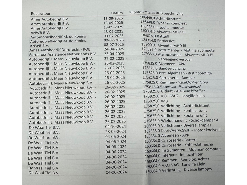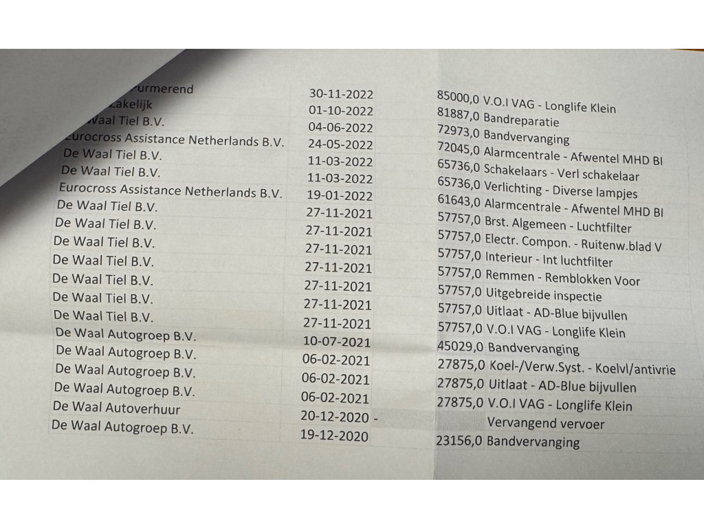 - Onderhoudsboekje aanwezig