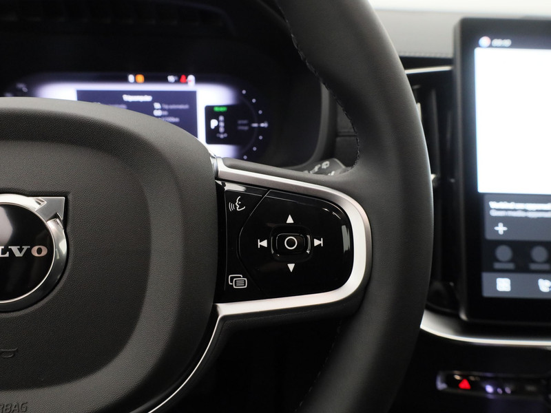 Het digitale dashboard zorgt voor een super functionele display van reisinformatie. De vier camera's die samen de 360 graden camera vormen, bieden u de mogelijkheid om obstakels in elke richting te zien. Als u de adaptive cruise control inschakelt, regelt de auto zelf de snelheid en de afstand tot de auto voor u. Naast handmatige bediening kunt u belangrijke functies met uw stem bedienen dankzij de ingebouwde spraakbediening. De topkwaliteit van het Harman/Kardon audiosysteem zorgt voor liefde op het eerste gehoor. De Volvo is standaard voorzien van: Harman Kardon-audiosysteem, full map navigatiesysteem, achteropkomend verkeer waarschuwing, kruisend verkeer detectie, electronic climate control en draadloos opladen.