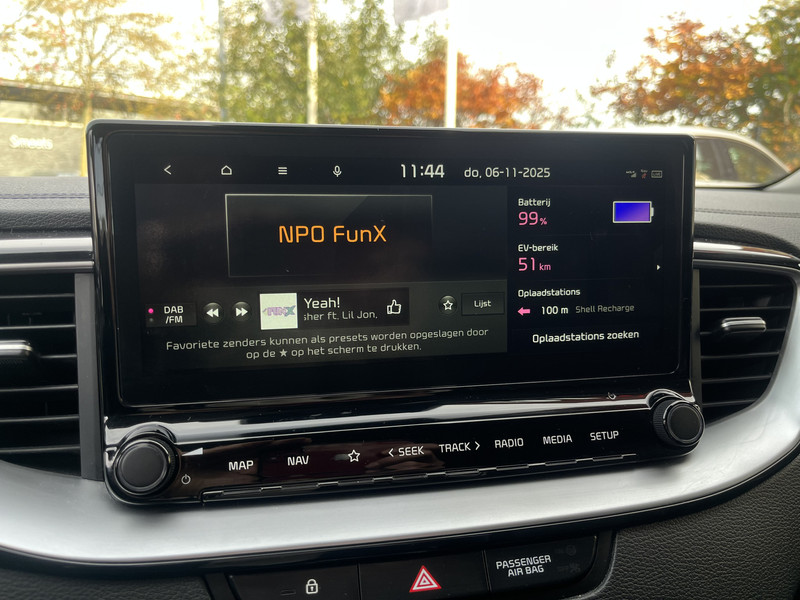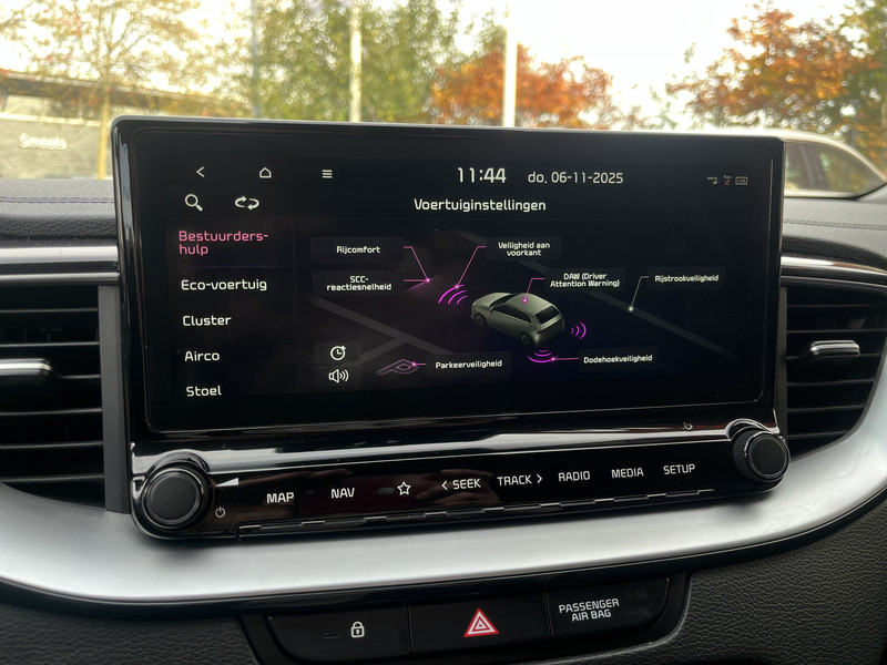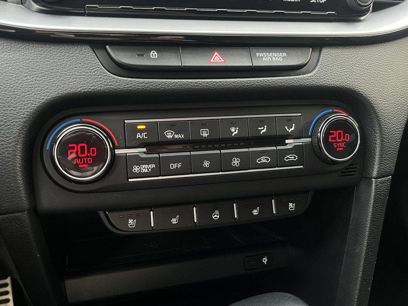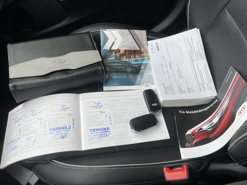 Het digitale dashboard is een perfecte bijrijder. Alles benodigde informatie is permanent zichtbaar of opvraagbaar. Onder alle omstandigheden perfect zicht op wat zich achter de auto afspeelt: de achteruitrijcamera zorgt ervoor! Met adaptive cruise control houdt deze auto automatisch afstand tot uw voorligger. In het zeldzame geval van een storing weet u nog eerder dan de monteur wat er mankeert. Uw smartphone met remote services geeft direct inzicht. U kunt tijdens de rit uw ogen steeds op de weg houden, want het audiosysteem (met DAB!) en het navigatiesysteem kunt u bedienen vanaf het stuur of met spraak. De Kia is standaard voorzien van: automatische airconditioning, draadloos opladen, regensensor, keyless entry, automatisch dimmende binnenspiegel en lederen stuur.
