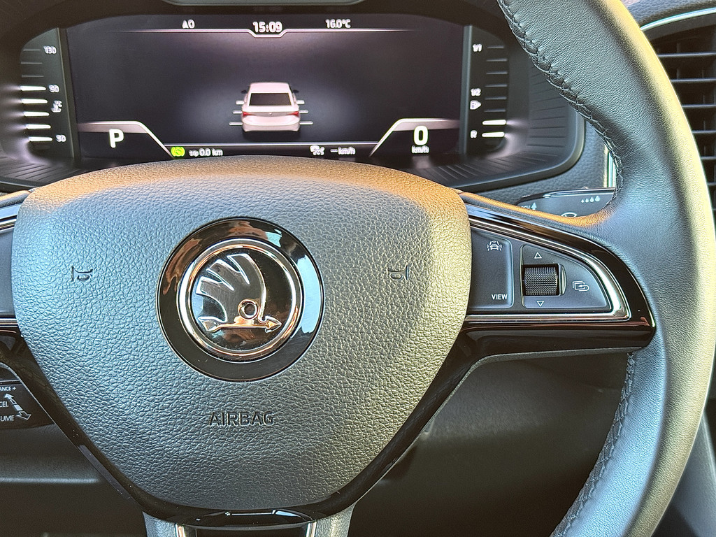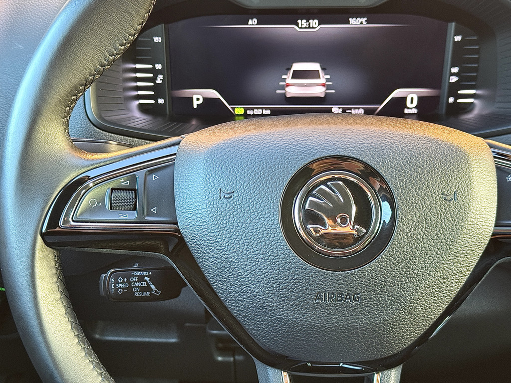Het digitale dashboard vertelt u alles wat u wilt weten voor een slimme, comfortabele en veilige rit. Achteruitrijden en inparkeren worden een eitje dankzij de achteruitrijcamera. Adaptive cruise control is veilig en comfortabel. De snelheidsregelaar houdt automatisch afstand tot het voertuig dat voor u rijdt. Had u de auto nou wel afgesloten? Met Connected Services checkt u het overal en altijd. Een optie die de veiligheid verhoogt, is de bediening vanaf het stuur van het audio-installatiesysteem (met DAB-radio!) en het navigatiesysteem. Als u wilt kunt u beiden zelfs met uw stem bedienen. U bent in deze ŠKODA ook voorzien van climate control links en rechts gescheiden, regensensor, keyless entry, automatisch dimmende buitenspiegels, lederen stuur en isofix-aansluiting.
