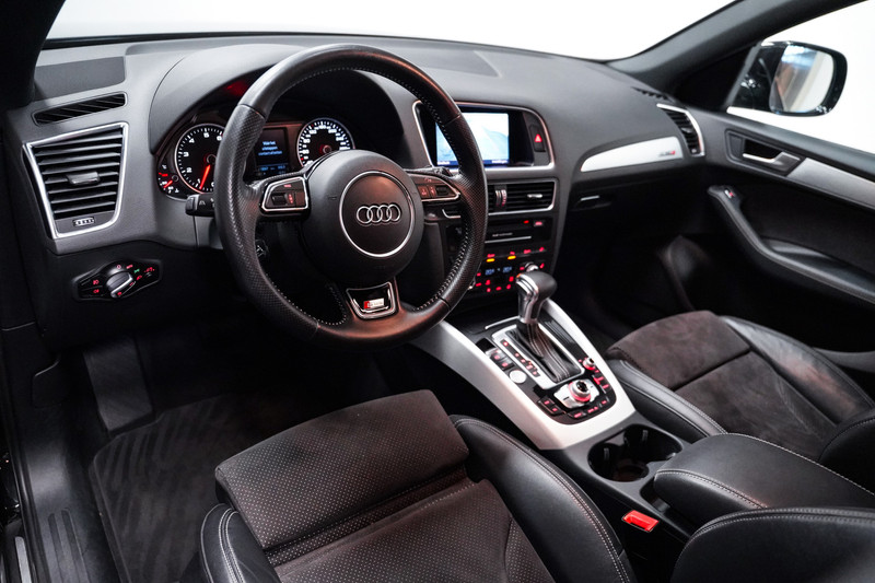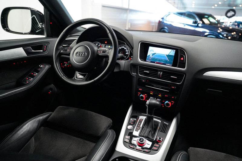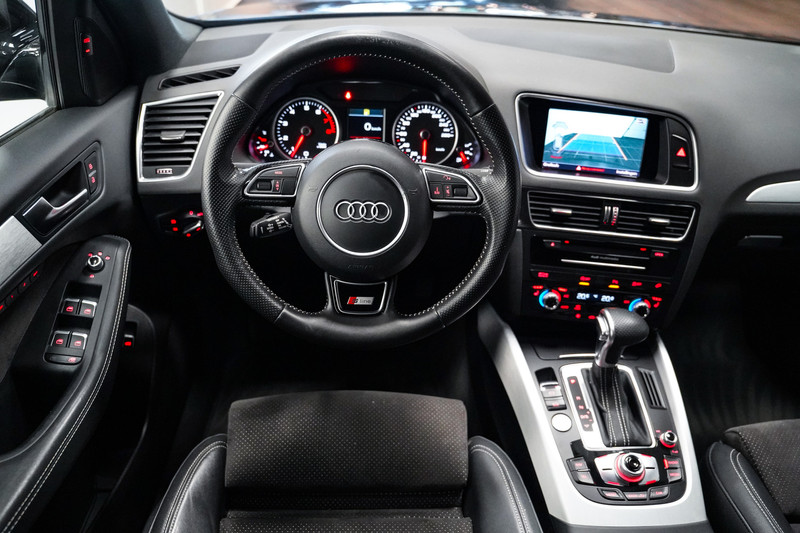 Wat een dikzak! Een zeer complete Audi Q5 2.0 230 pk quattro S-Line met o.a. 22 inch, xenon/led, half lederen sportstoelen elektrisch verstelbaar en geheugen, camera, adaptive cruise control, side assist, een elektrische klep en een trekhaak!