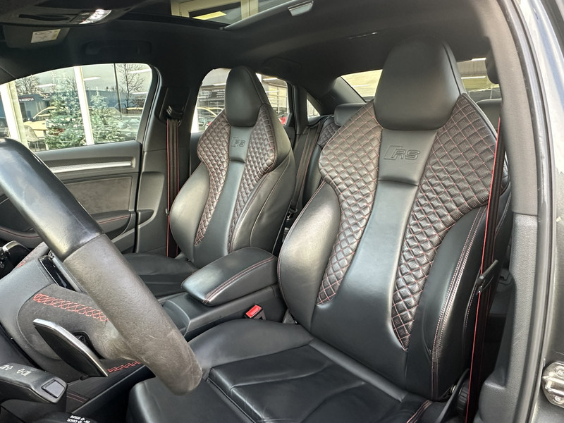 Kippenvel! Laat u verleiden door de stijl en de prestaties van deze Audi RS3 Limousine. Hij heeft 86651 kilometer gelopen en is van het bouwjaar 2019. Trap het gaspedaal in en voel de geweldige acceleratie van de vijfcilinder benzinemotor van deze sportwagen. Met zijn lederen bekleding is deze Audi comfortabel en stijlvol. De verwarmbare voorstoelen zijn een weldaad voor rug en schouders. Rijden met pit? Geen punt! De sportstoelen geven steun en stevigheid! Laat de zon maar schijnen door het elektrisch bediende glazen panoramadak. Bij de rijke uitrusting horen ook 19 inch lichtmetalen velgen, Audi instelbaar onderstel (drive select), adaptief dempingsysteem, warmtewerend glas, verstelbare lendensteunen, elektrisch inklapbare buitenspiegels en in delen neerklapbare achterbank.